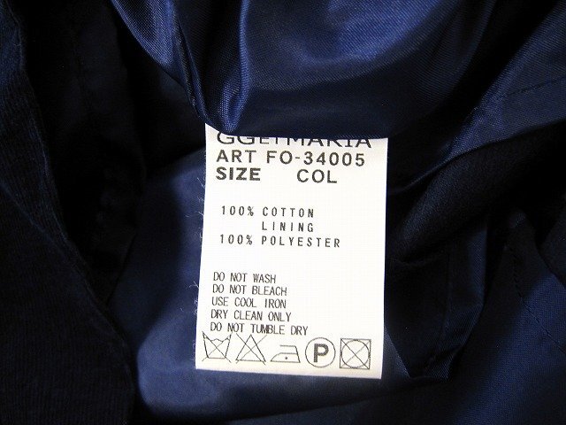 状態は良好で目立つ傷、汚れの少ない中古品。 | ※ 状態は、弊社基準により表記をさせて頂いております。 ※ リユース商品の為、表示しきれないダメージなどある場合もございます。 ※ 実店舗業務の運営上、質問にお時間をいただく場合や主観的なご質問にはお答えできかねる場合がございます。 サイズ | | 【肩幅】 : 31cm 【身幅】 : 45cm 【着丈】 : 78cm すべて平置きでの採寸となっております。 素人採寸ですので、ご参考程度にお願いします。 付属品 | ※ 出品商品はお写真に写るものが全てとなります。 | ※ ハンガー・スタンド等、備品を用いて撮影している場合がございますが、備品は付属いたしません。 店舗名 | 四日市店 | 発送について | ゆうパック、もしくは 佐川急便、ヤマト運輸(選択は出来ません) 元払のみの発送です。管理上その他の発送方法には、対応できません。お問い合わせは、ご遠慮願います。 | お支払いについて | 落札金額 + 消費税 + 送料 のお支払いとなります。 | 送料は送料欄にて、お届け先の都道府県をご選択頂き確認をお願い致します。 ※ 離島など別途追加が必要な場合もございます。 ※【お支払方法】銀行振込・代引きには対応しておりません。 同梱について | ※ 発送の拠点が複数ございます。同梱できない場合は個別配送となりますので、ご容赦下さい。 | ご落札の流れ | ヤフオク!ストアが出品した商品を落札した場合、個人が出品した場合とは取引方法が異なります。また、ストアとの取引では商品受け取り後の受け取り連絡は必要ありません。 | >> ヤフオク! リンクはコチラ ご注意事項 | お写真は撮影時の状態です。 | 店頭にて併売しているお品はコンディションが変わる場合もございます。 購入時に著しくコンディションが変わってしまっている場合はご連絡いただければ真摯に対応致します。 お色・状態に関しては、モニター環境や、太陽光・室内ライトなどの環境により、見え方が違う事もございますので、ご理解頂ければ幸いです。 中古品ですのでノークレームノーリターンでお願い致します。 材質タグがある場合は、写真撮影しておりますので そちらでご確認願います。 他店舗でも同時に販売しておりますので、売り切れの際は ご容赦頂ければ幸いです。 |