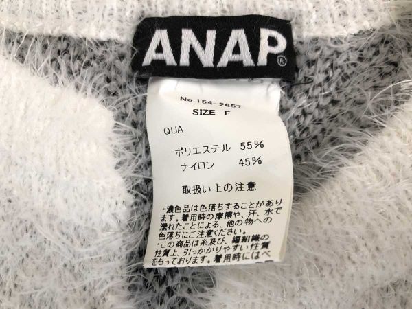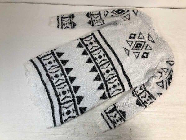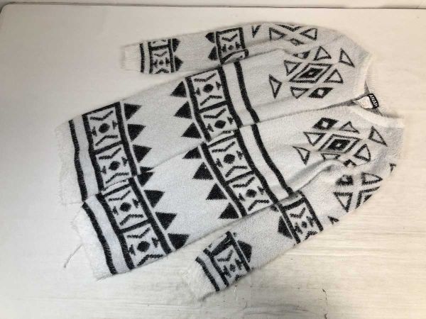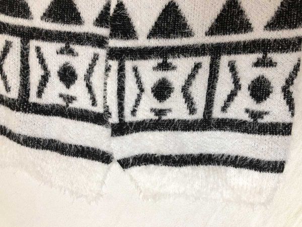 アナップ ANAP アメカジ 民族エスニック ネイティブ柄 シャギーニット ボタンレス ロング丈 トッパーカーディガン レディース L 白黒です。