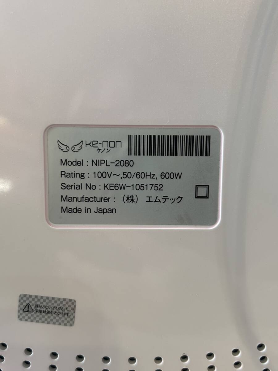 mm-osk339 ケノン KE-NON ver6.2 フラッシュ式脱毛器 NIPL-2080 通電確認済み