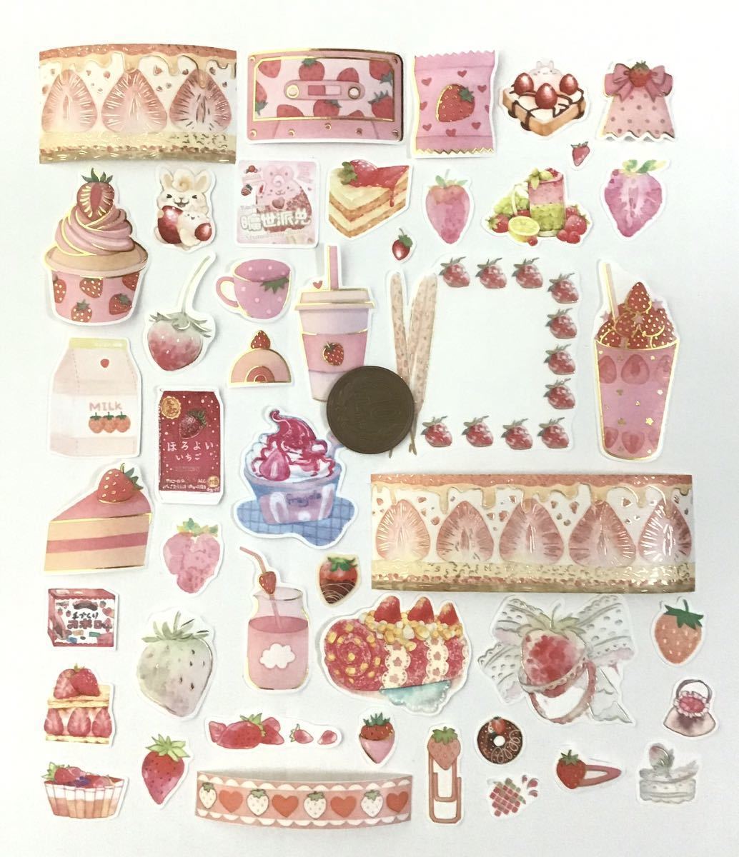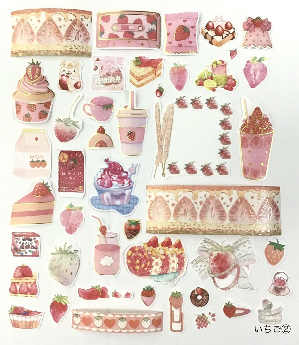 【イチゴ②】型抜きフレークシール スイーツ ストロベリー 苺 マスキングテープ シール ほぼ日 コラージュ 日記