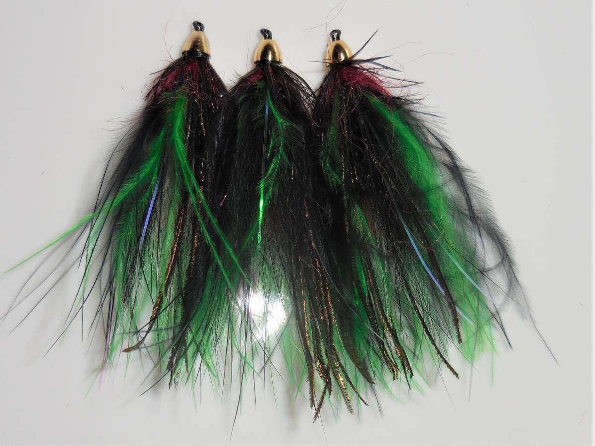 活性の低いトラウトを狙うにはゆらゆらと動くマラブーがとても有効です。両サイドにマラブーを取り付けており、ボリューム感アップに仕上げてみました。