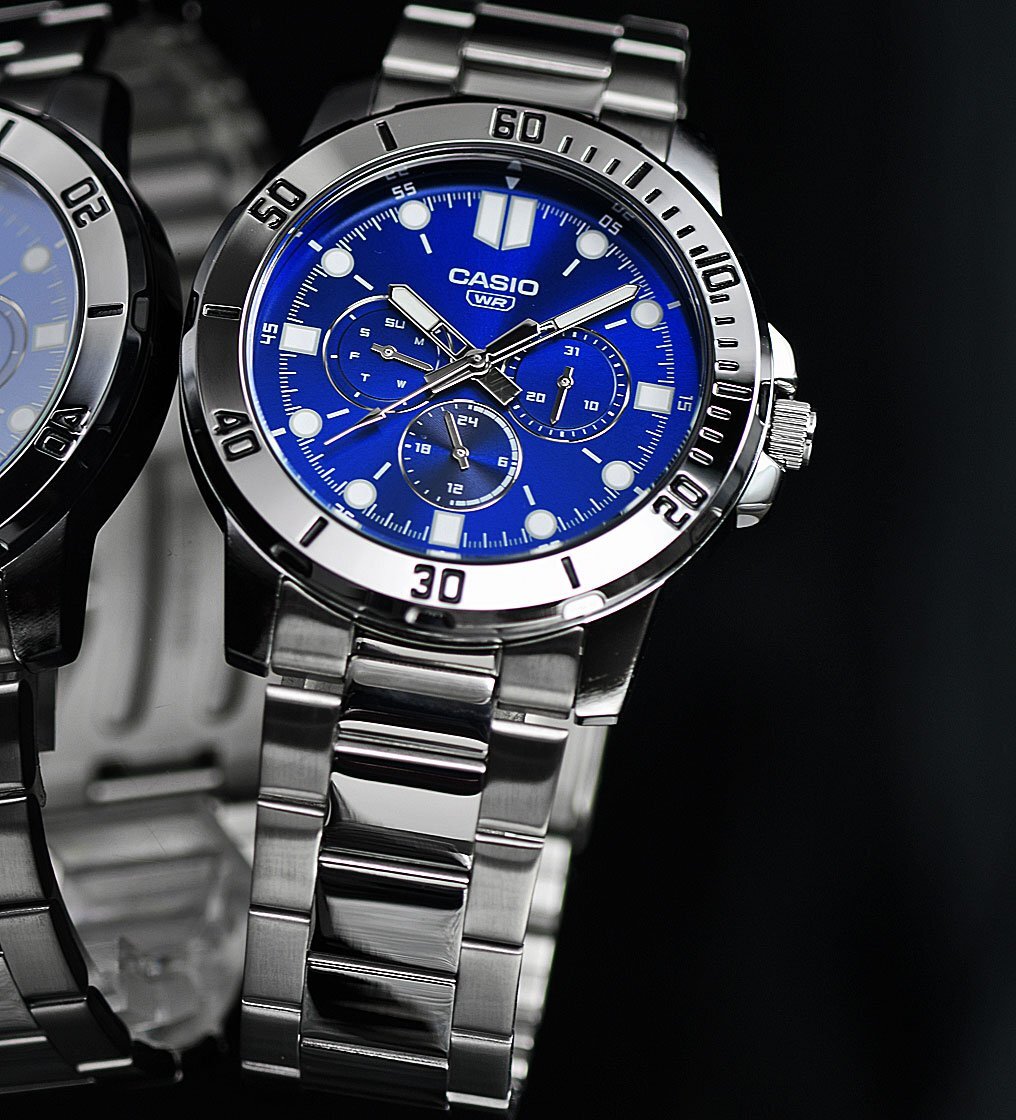 新品 逆輸入カシオ最新作 鮮烈サファイヤブルー 30m防水 マルチファンクション 腕時計 新品 CASIO メンズ 激レア日本未発売