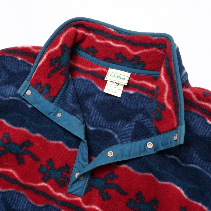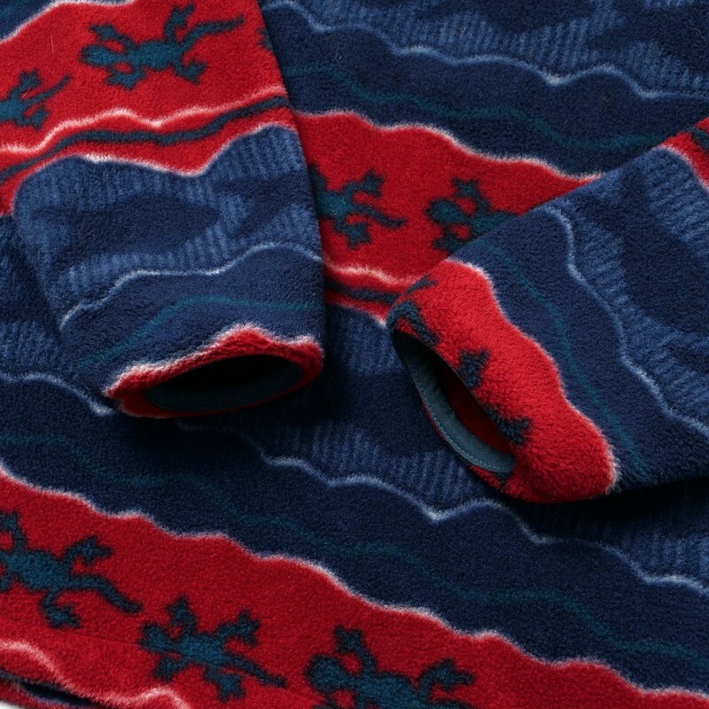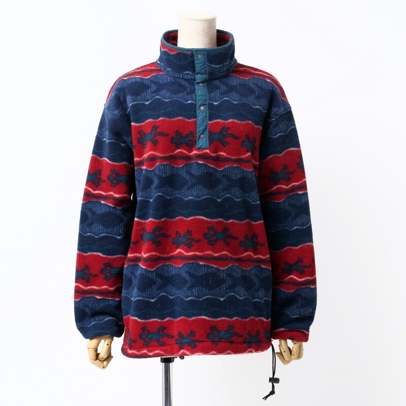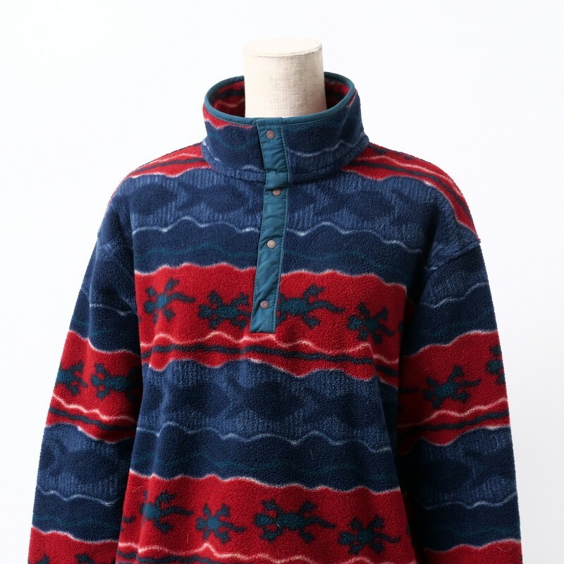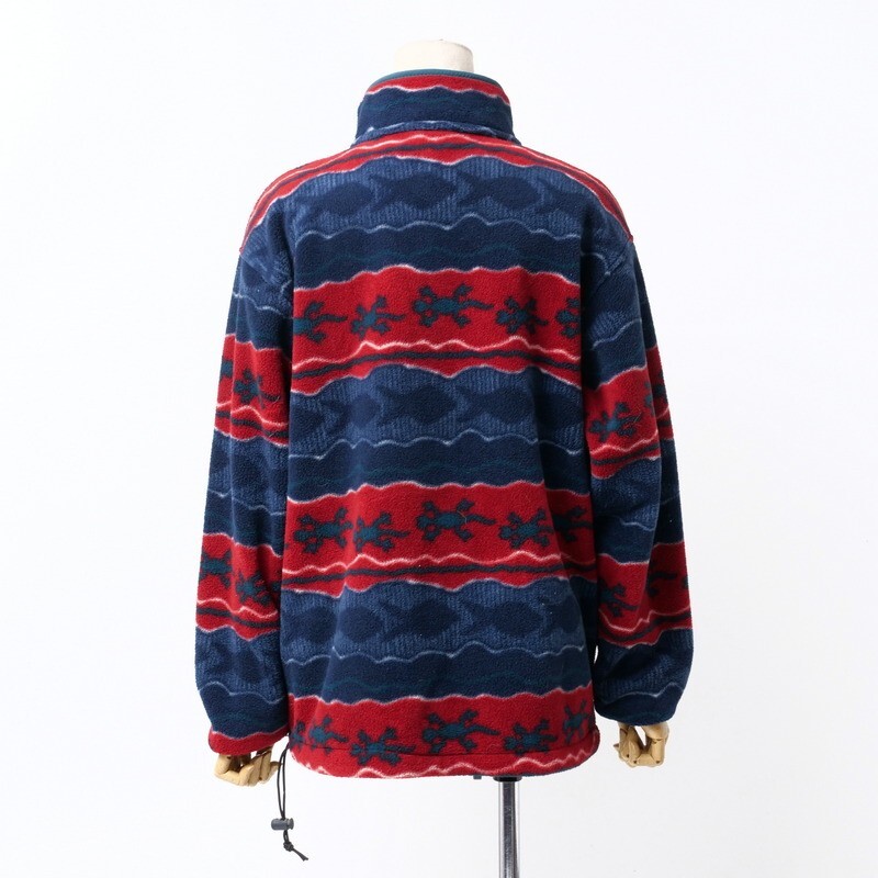 | TJ3864●エルエルビーン/L.L.Bean*ハーフボタン スタンドカラー ボーダー柄*魚柄 トカゲ柄*フリース ジャケット*レディーズ サイズM | |||