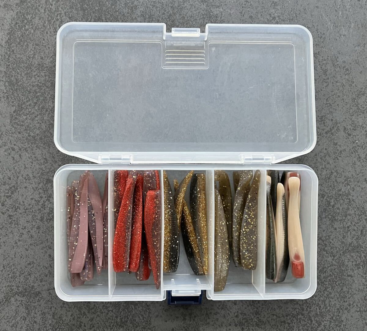 タックル整理のため出品しました。ボトムワインド系の特別カラーと廃盤カラーを含むマナティー75実釣未使用品30本になります。