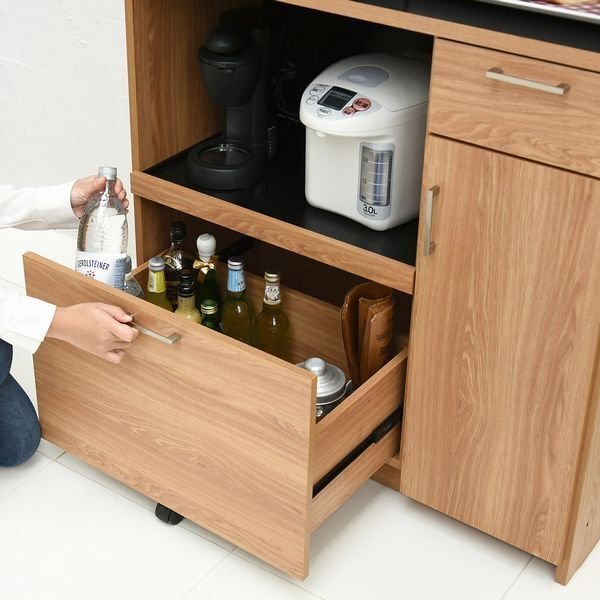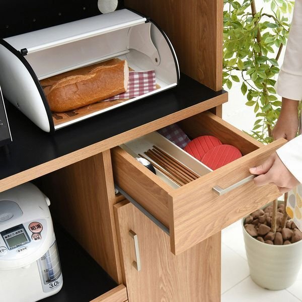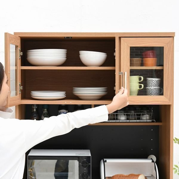 置くものを選ばない食器戸棚付きレンジ収納ラック。 これ一台でおしゃれな北欧キッチンに早変わり!キッチン家電 食器 すべてが収まります。 デザイン性、機能性、収納力に富んだ実力派のレンジ台です。 |