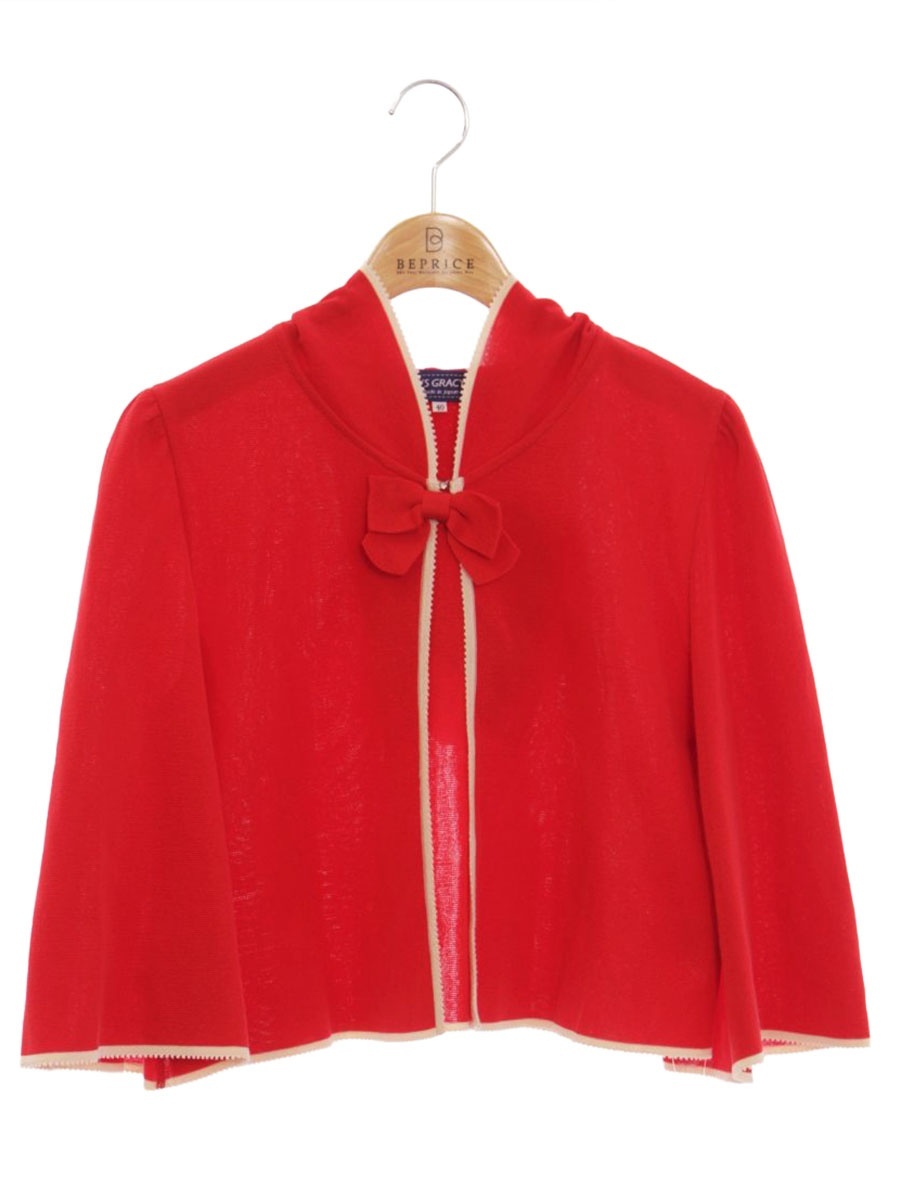 M'S GRACY エムズグレイシー カーディガン 40 レッド フード付き配色トリミング ITTP4VL9IMKK