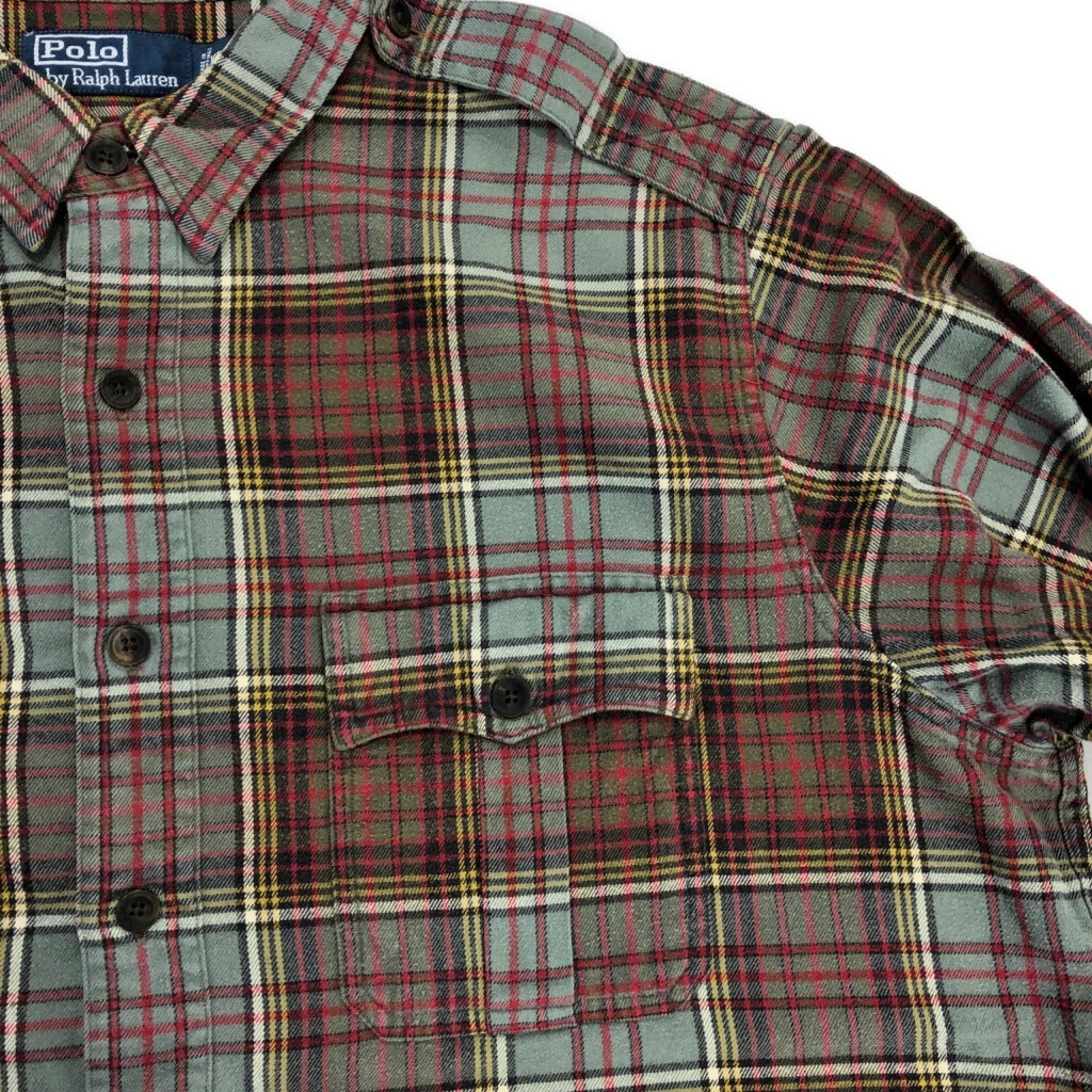 | 【商品管理番号】 U6578 【ブランド】 Polo by Ralph Lauren/ポロ ラルフローレン 【サイズ】 XL 【実寸サイズ】 肩幅:約49cm 着丈:約78cm 身幅:約65cm 袖丈:約66cm 【主な素材】 表地 : コットン 【色】 グレー 【仕様】 チェック 【状態】 特記事項:ボタン破損 | |||