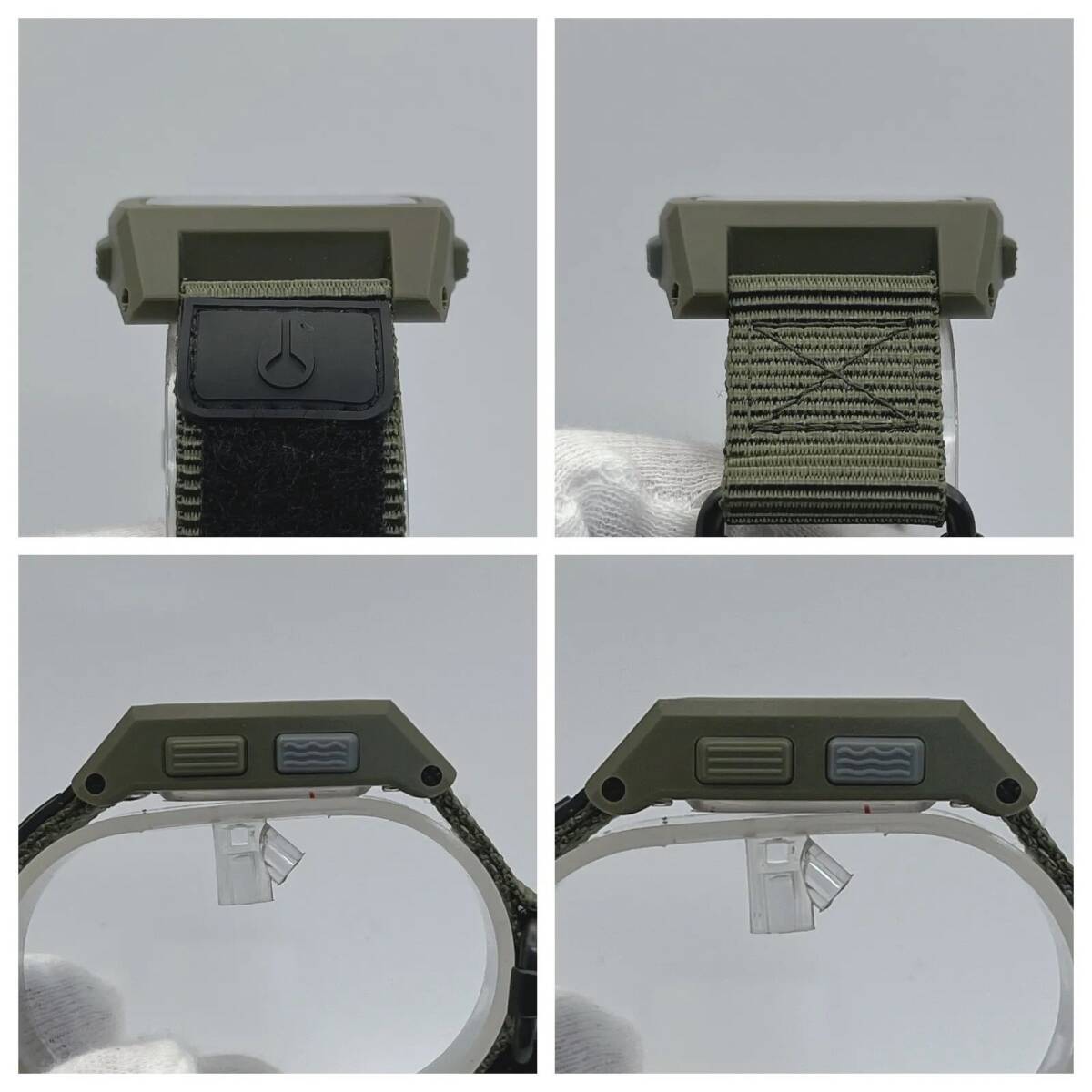 バンド:PUアクセントの入ったカスタムナイロン、ベルクロ、ステンレススチールバックル、バンド幅22mm