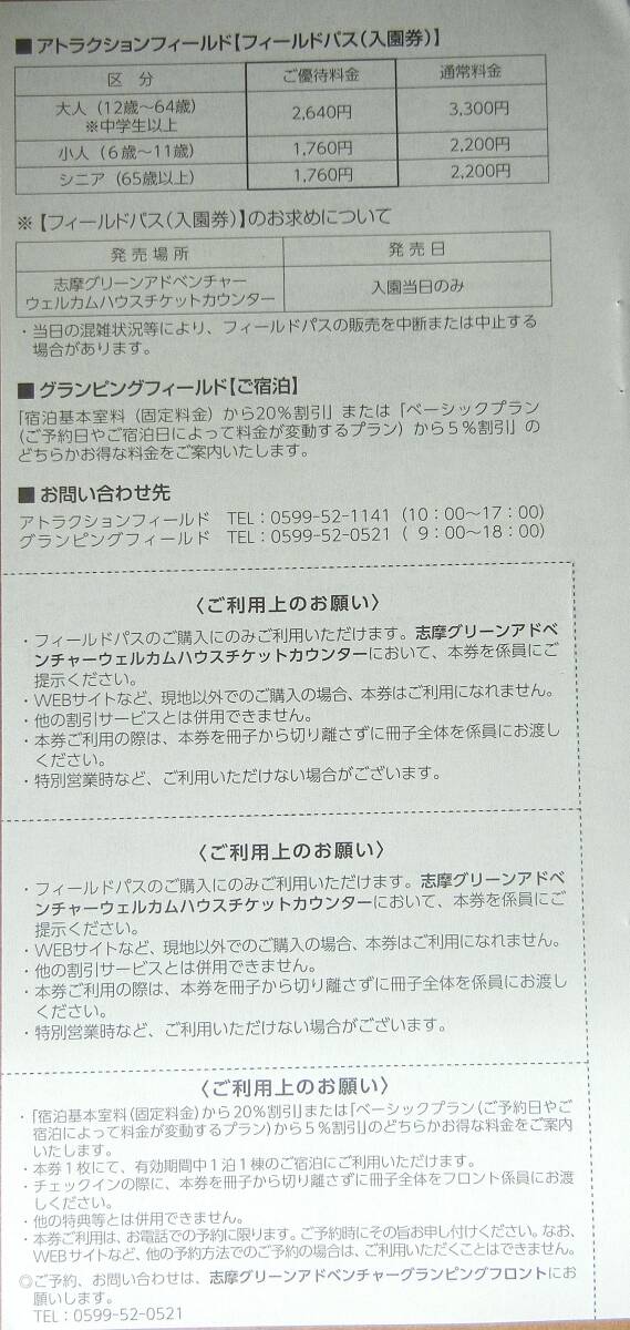 *志摩グリーンアドベンチャー フィールドパス優待券
