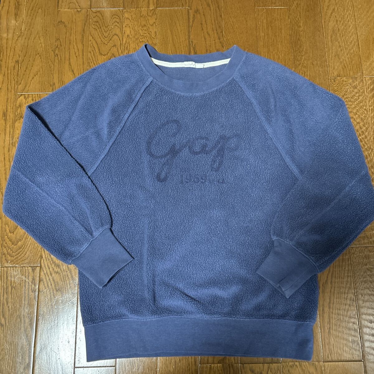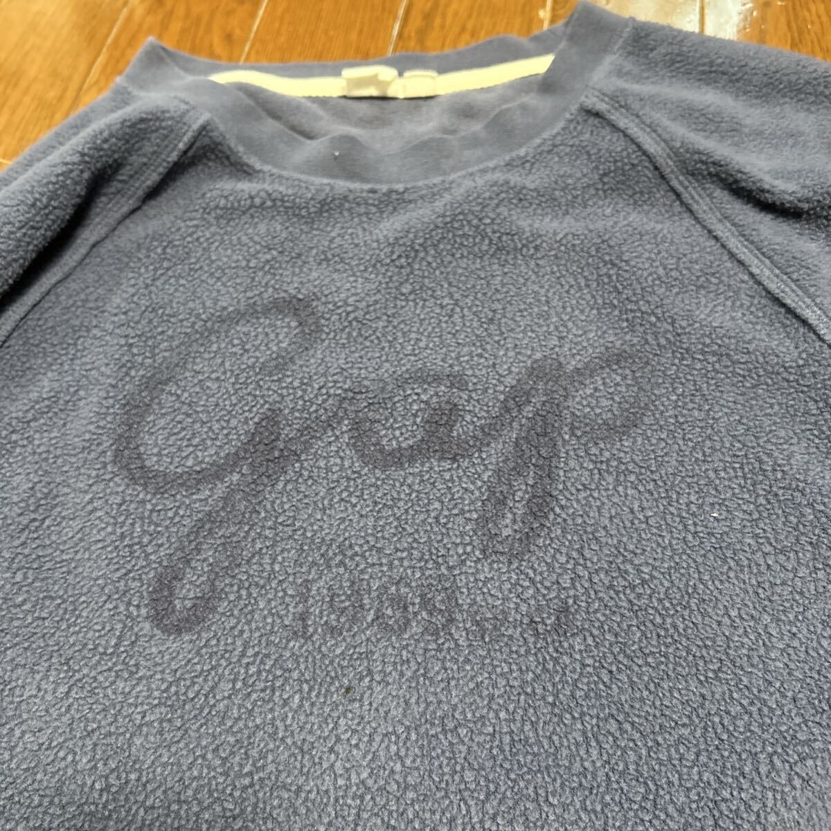 GAP フリース素材のネイビーのトレーナー、ラグラン袖とリブ編み裾で快適な着心地。