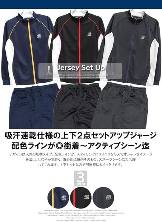 | 商品説明 | 吸汗速乾性のある素材のジャージ上下セットアップの登場です。 |