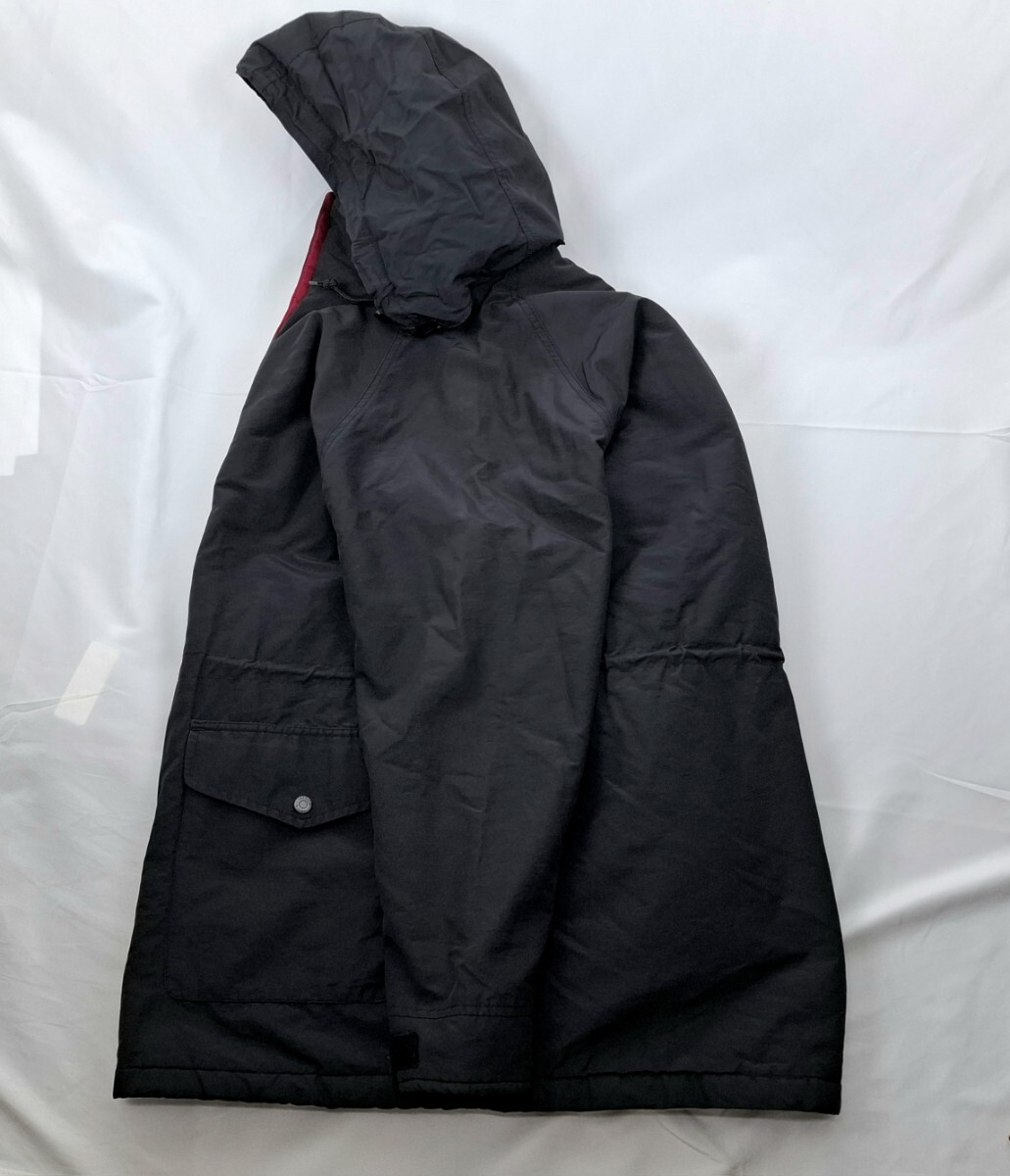希少なブラックの珍しい一着で、フードは襟に収納可能です、サイズ表記はSですが大きめの造りです。