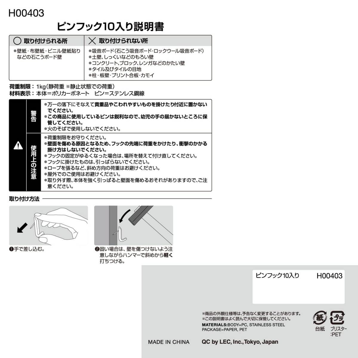 レック(LEC) ピンフック 10個入 耐荷重:1kg ホワイト H00403