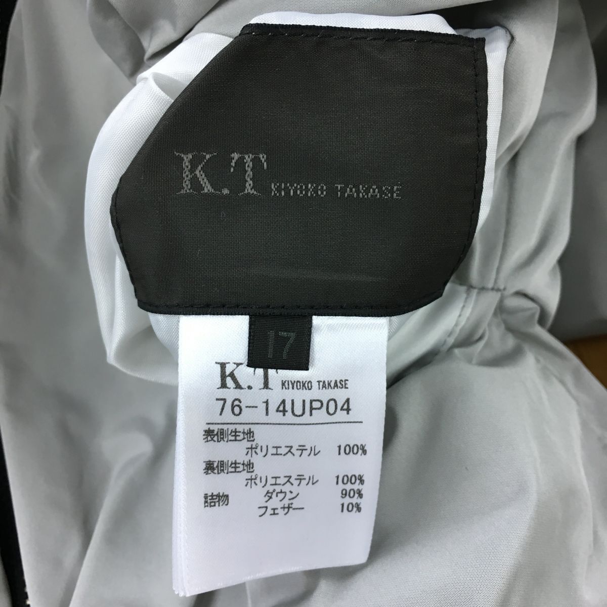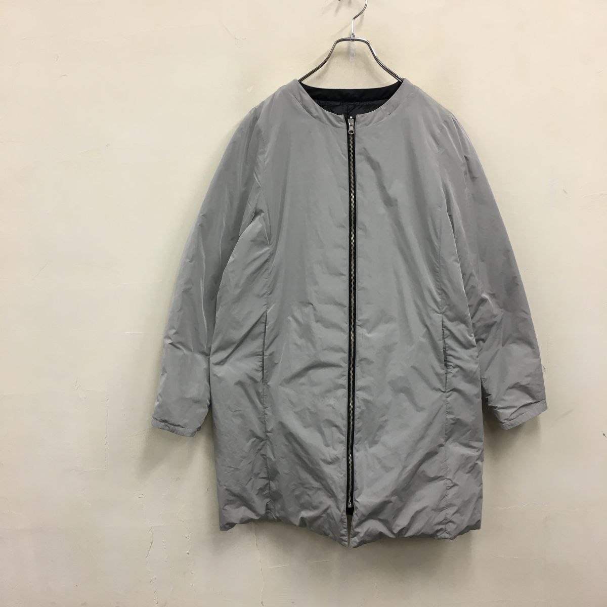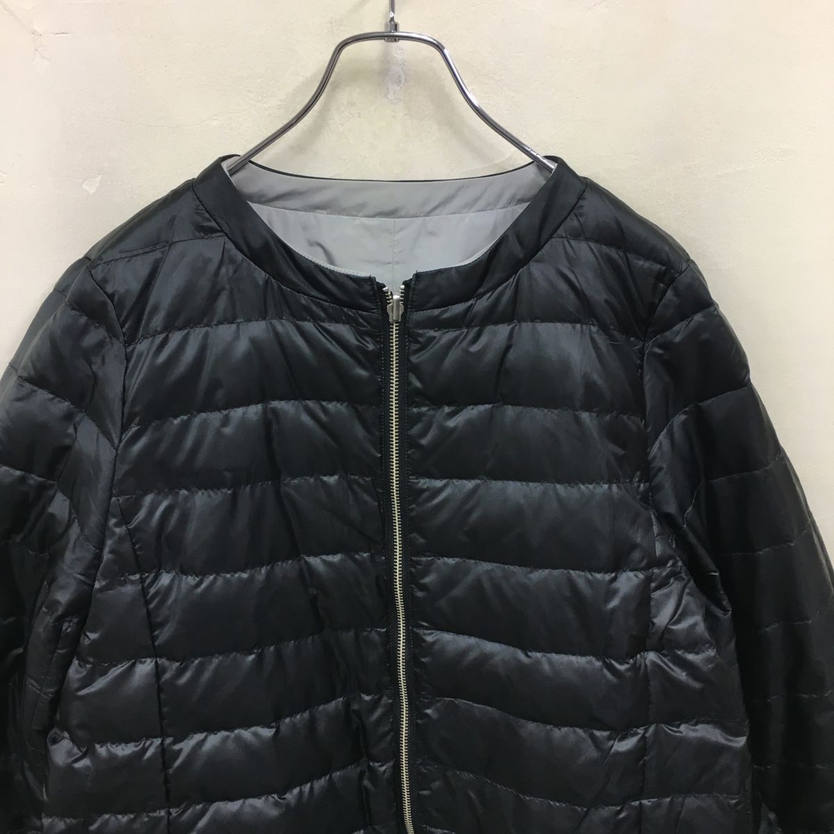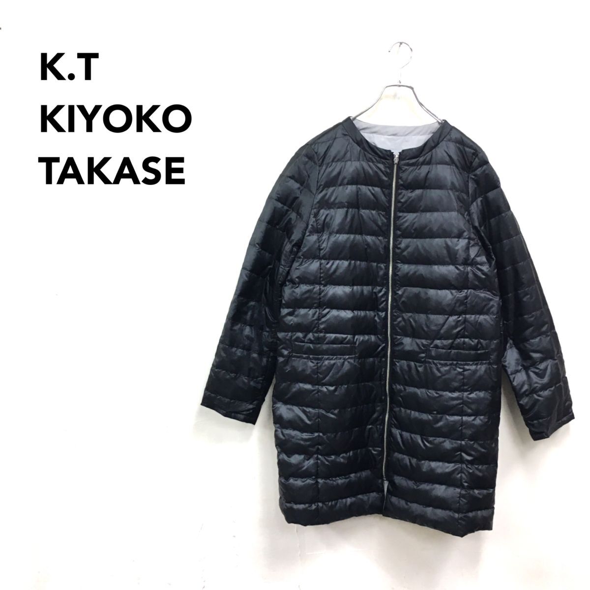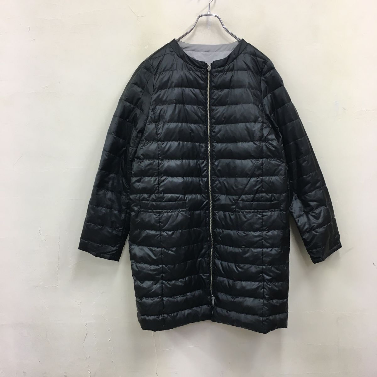2N1282-G◆ K.T. KIYOKO TAKASE リバーシブルミドルダウンコート ジップアップ ノーカラー ストレート 軽量 ◆ size17 黒 グレー