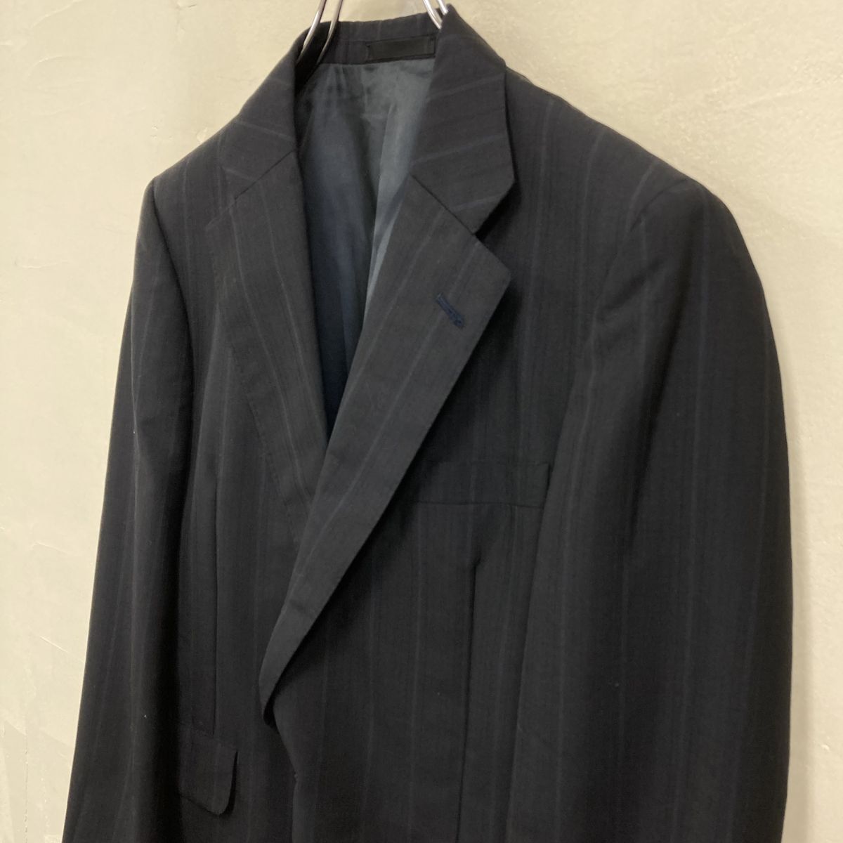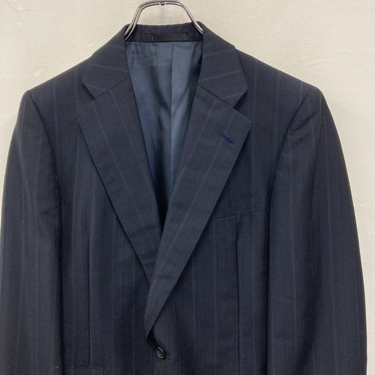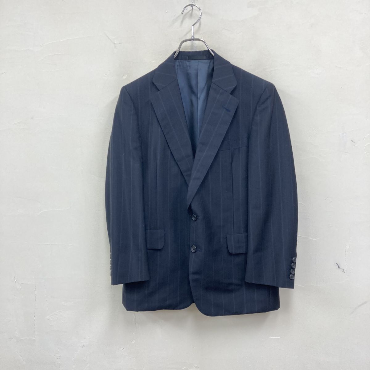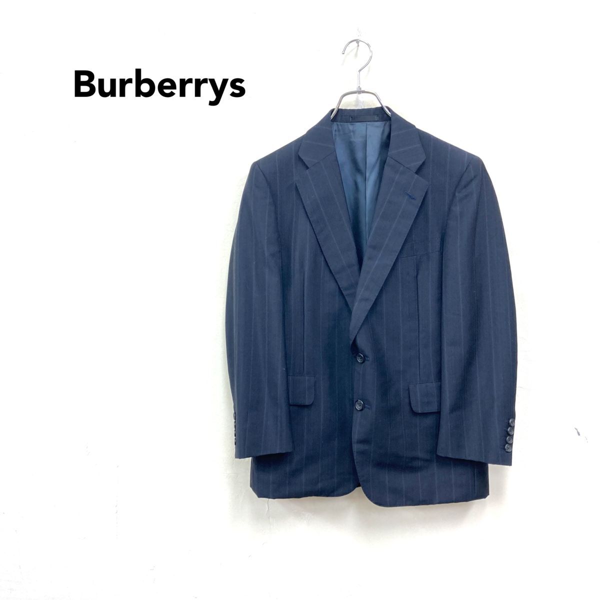 2N1487-Y◆old◆Burberrys バーバリーズ シングルスーツジャケット ストライプ ノッチドラペル 背抜き サイドベンツ メンズ ◆ネイビー 毛