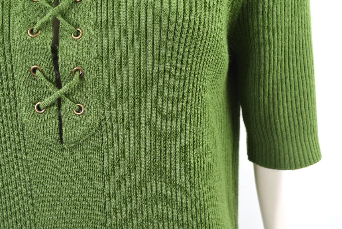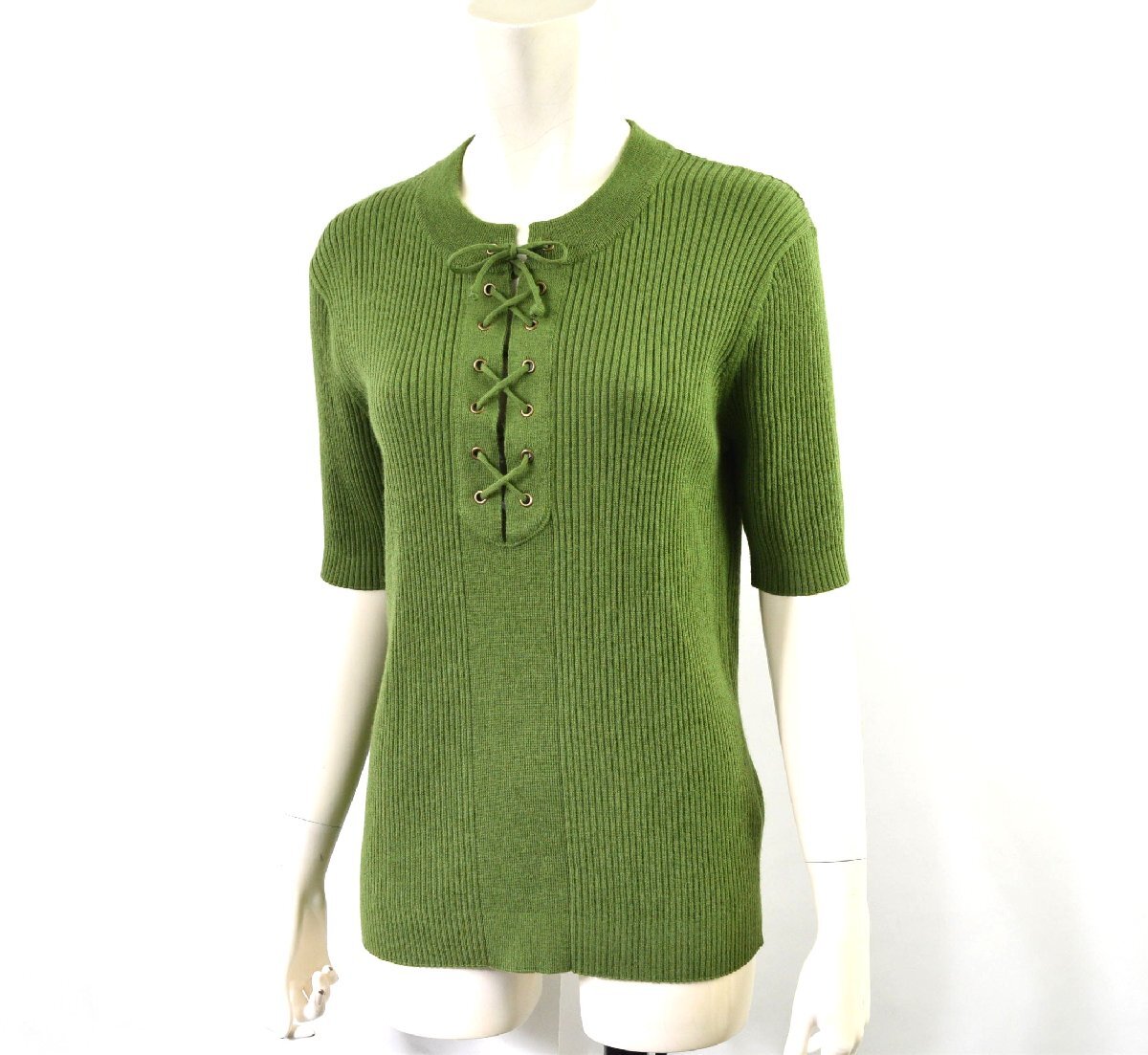 2049-25R0412★ドリス ヴァン ノッテン ★レースアップリブニット グリーン 抹茶 緑 五分袖 秋冬 Lサイズ相当