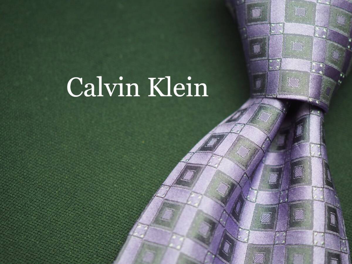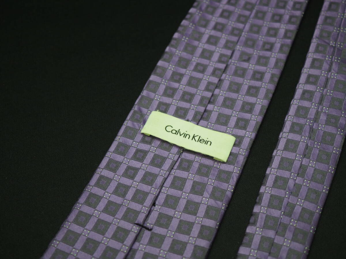 美品【Calvin Klein カルバンクライン】 G1358 パープルグレー系 SILK ブランド ネクタイ 古着 良品 転売 仕入