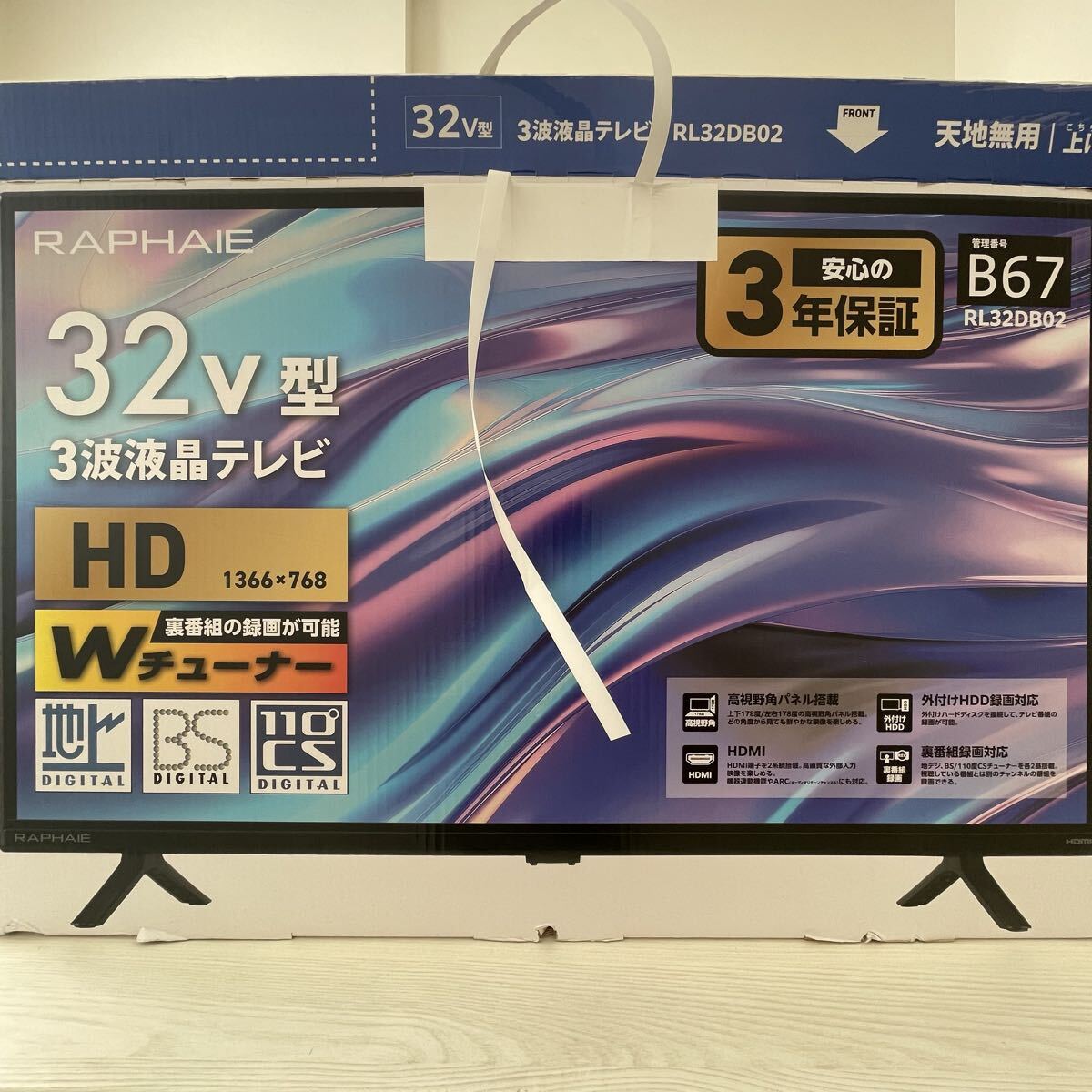 【B780-11】raphaie ラファイエ 液晶テレビ RL32DB02 3V型 2024年製 HD 1366×768 外付けHDD録画機能 裏番組録画対応 HDMI端子2系統装備