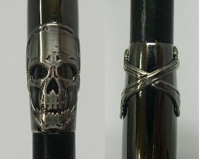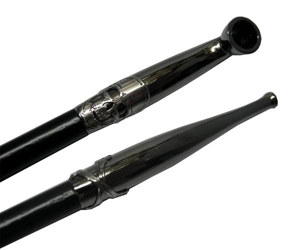 《< 新品 日本製 中尺 天然木 黒染めキセル(煙管) (約)20cm ガンメタ装飾(スカル)   >》