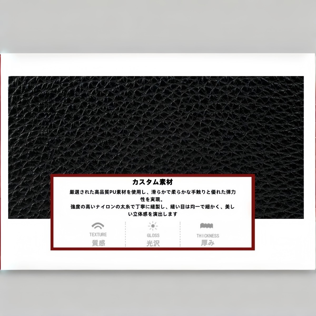 厳選された高品質PUレザーを使用し、滑らかで柔らかな手触りと優れた耐久性を実現。強度の高いナイロン糸で丁寧に縫製され、細やかなステッチが上品な印象を与えます。