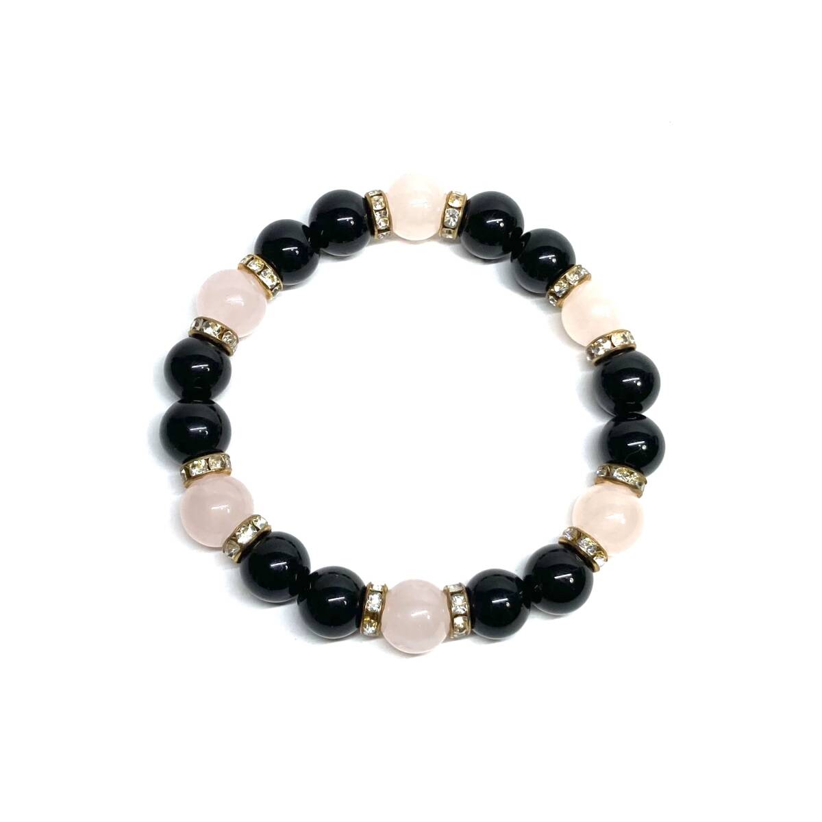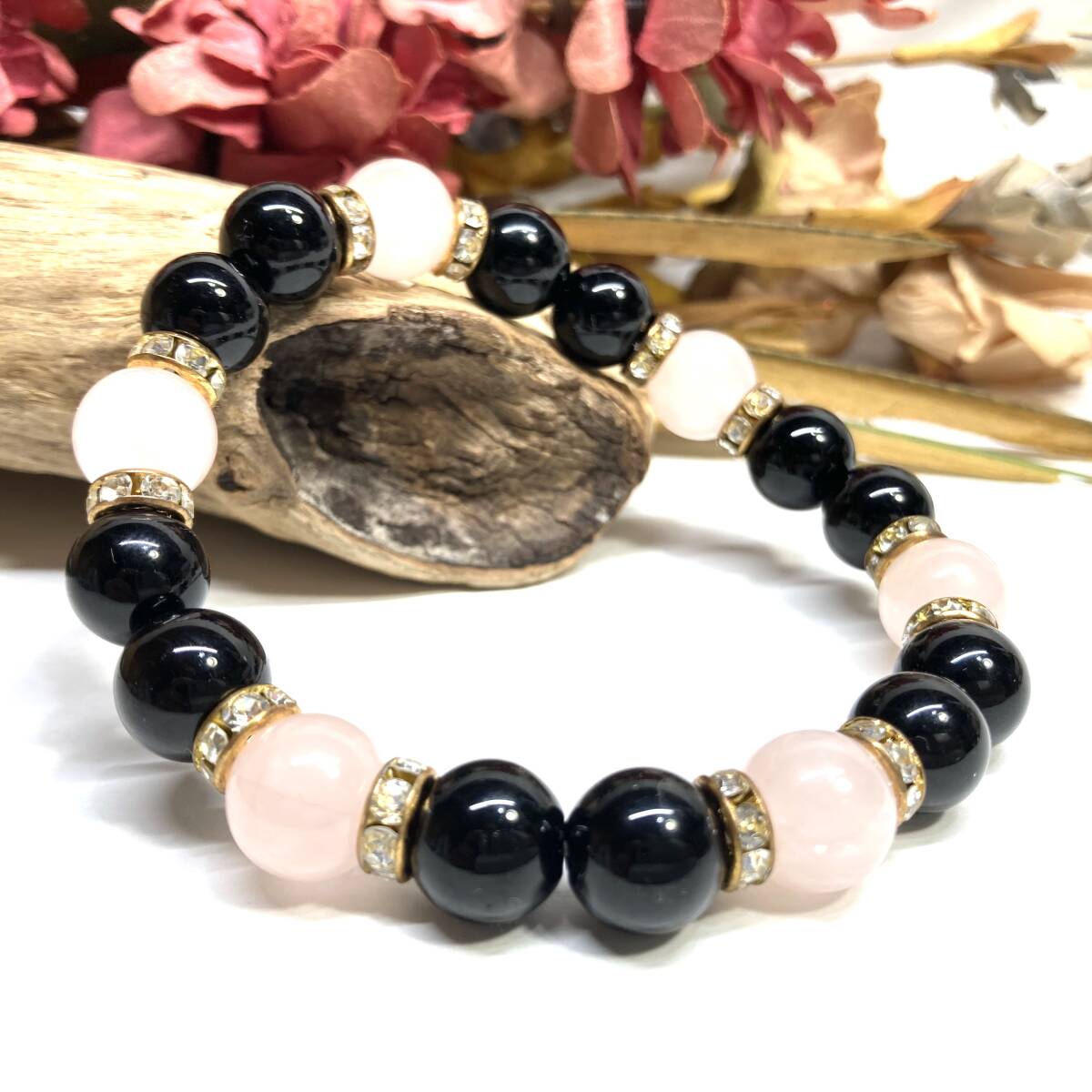 こちらは、モリオンとローズクォーツを組み合わせたパワーストーンブレスレットです。間にはロンデルを挟み高級感あるデザインに仕上げております。石大きさは腕にも馴染みやすいように10mm玉で内径約18cm(伸可能)です。(サイズ変更の場合は取引ナビにてご連絡をお願いします。) 数に限りがございますので気になる方はお早めにどうぞ。