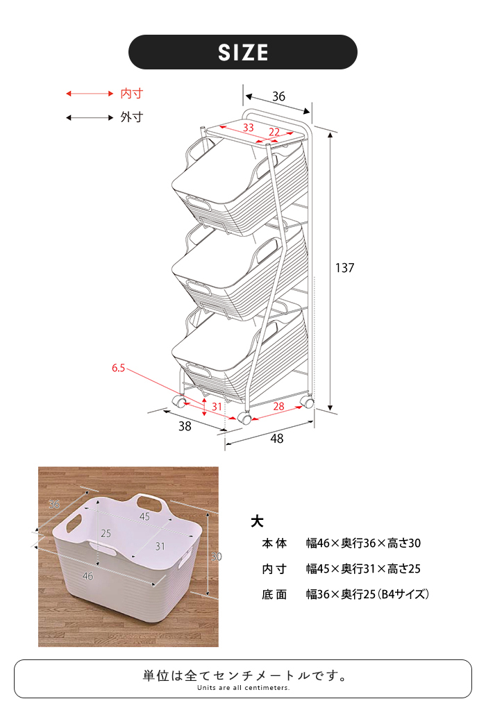 | [本体]スチール(メラミン焼付塗装) [天板]MDF [バスケット]ポリエチレン |