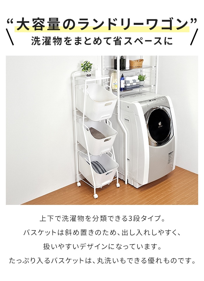 | ランドリーワゴン バスケット付き 3段 幅38 高さ97.5cm キャスター付き 洗濯かご 洗濯物入れ 収納ワゴン 大容量 便利 ランドリーバスケット ランドリーラック ランドリー収納 キャスター付きワゴン バスケットワゴン 脱衣かご 隙間収納 収納用品 天板付き 洗濯物 シンプル 脱衣所 洗面所 日本製 国産 燕三条 |