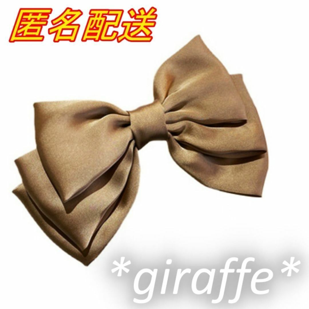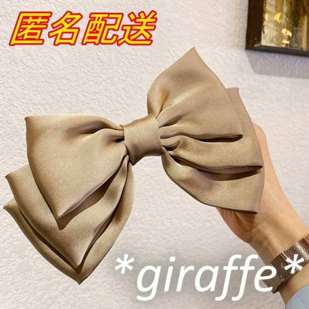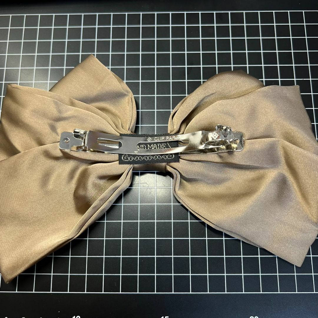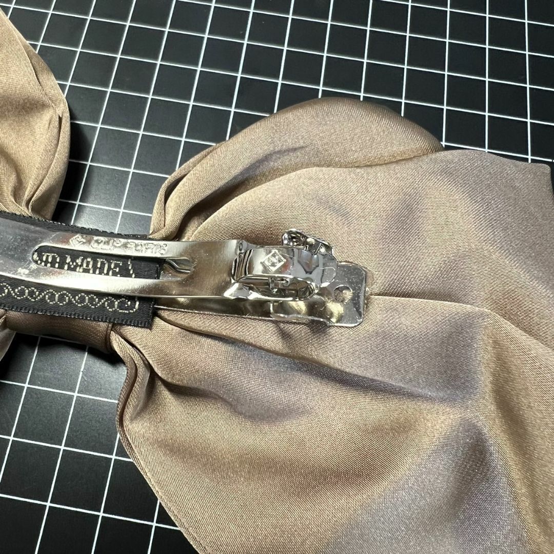 E505 匿名配送 バレッタ サテン リボン カーキ 髪留め ヘアアクセサリー ヘアクリップ