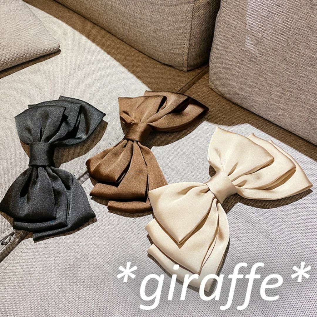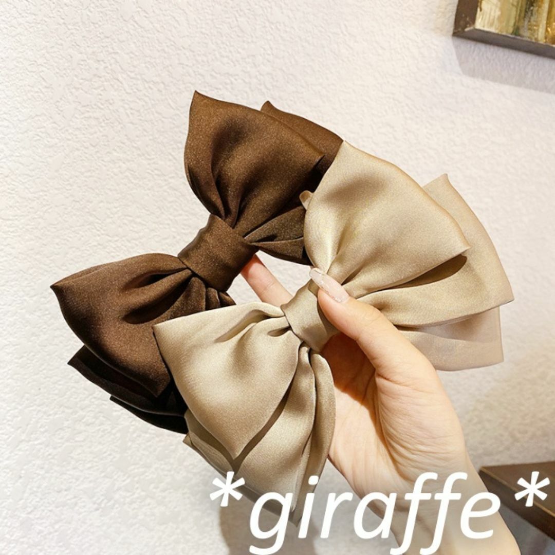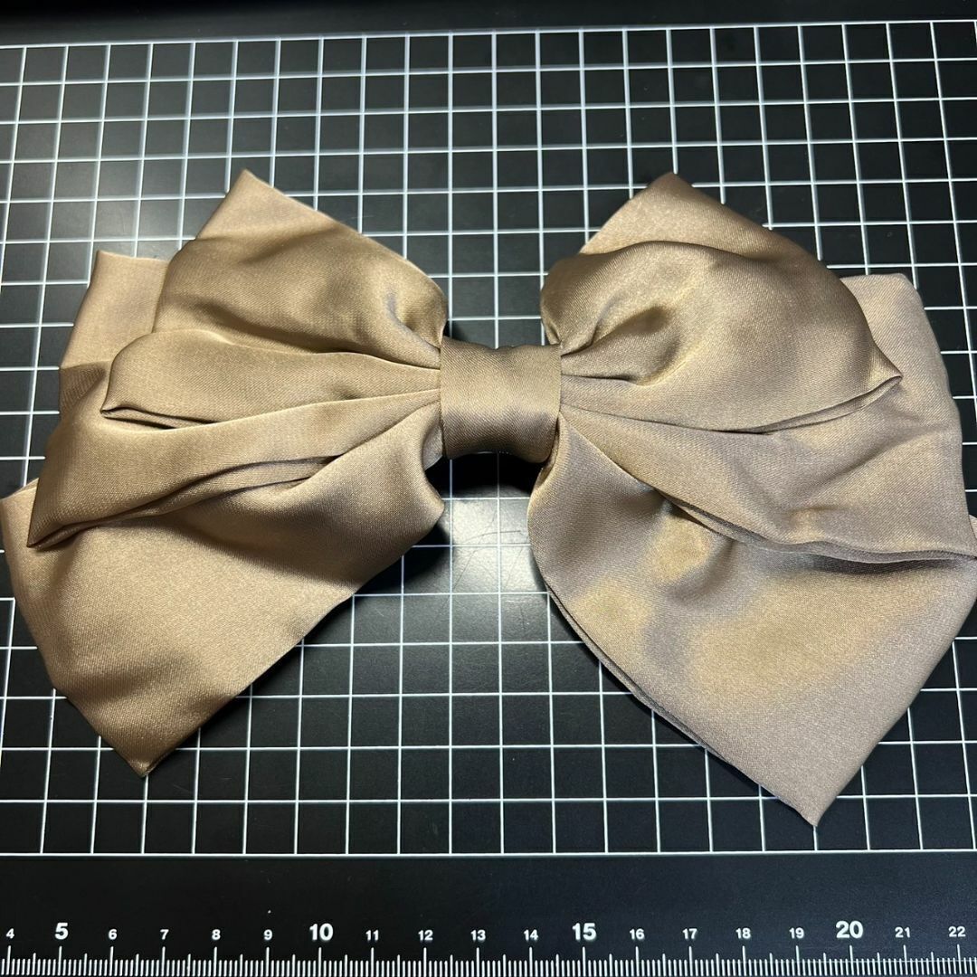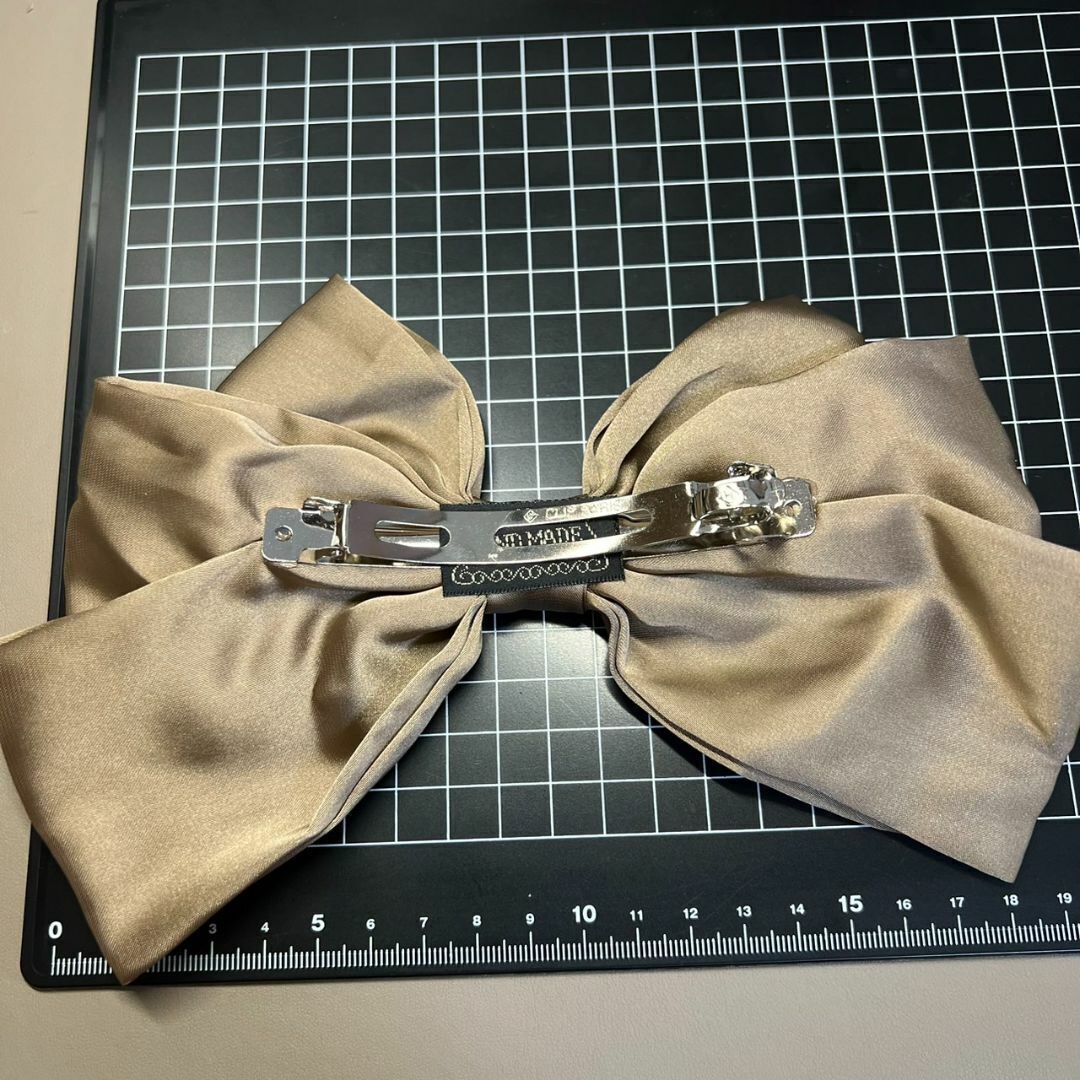 E505 匿名配送 バレッタ サテン リボン カーキ 髪留め ヘアアクセサリー ヘアクリップ