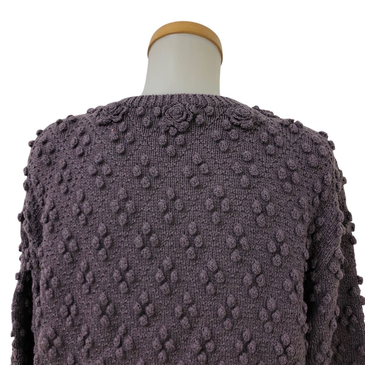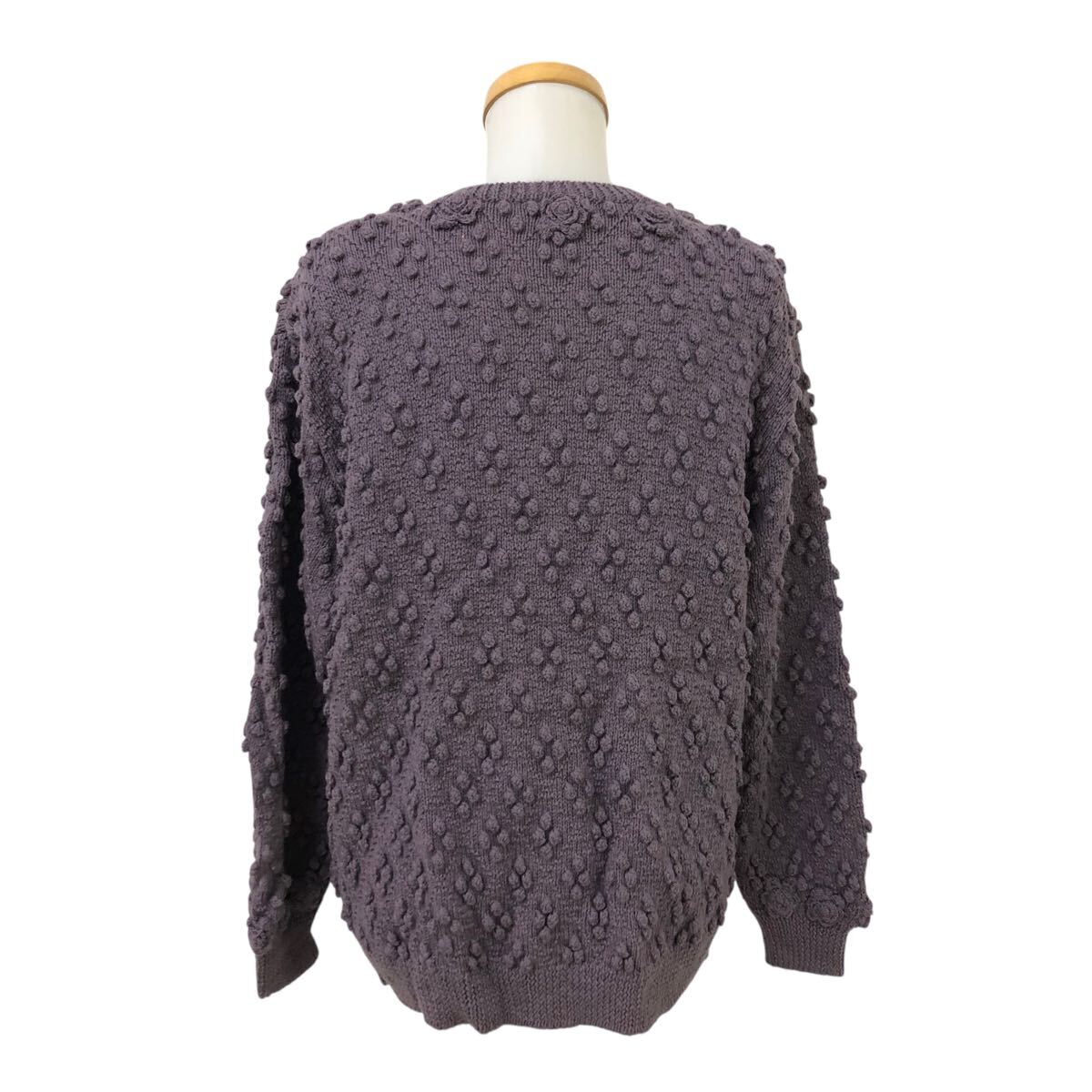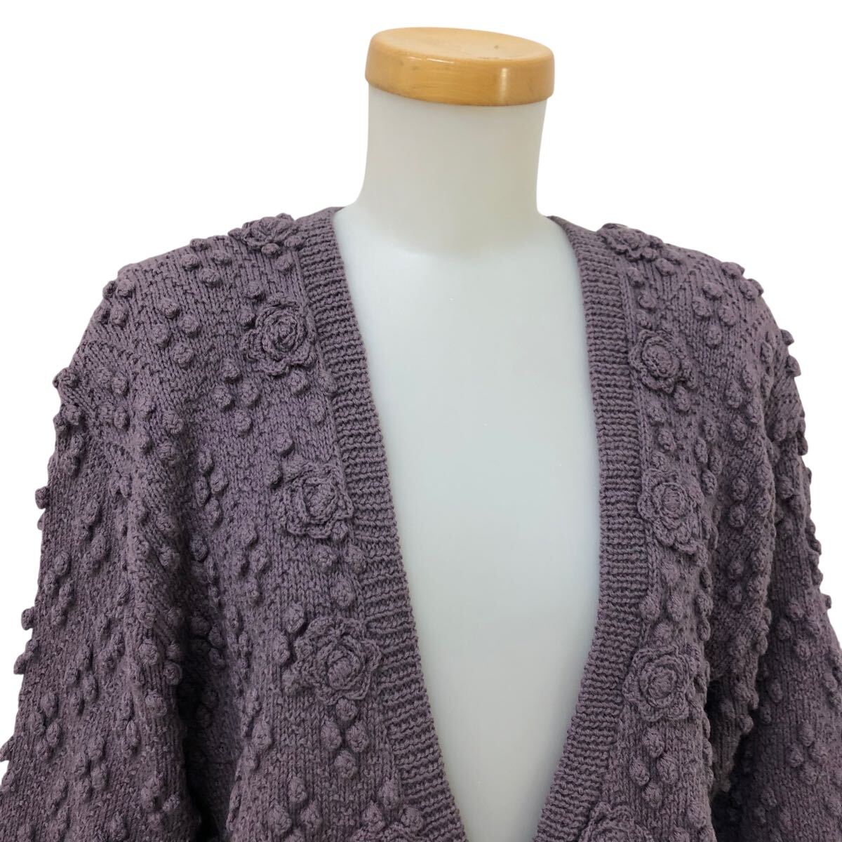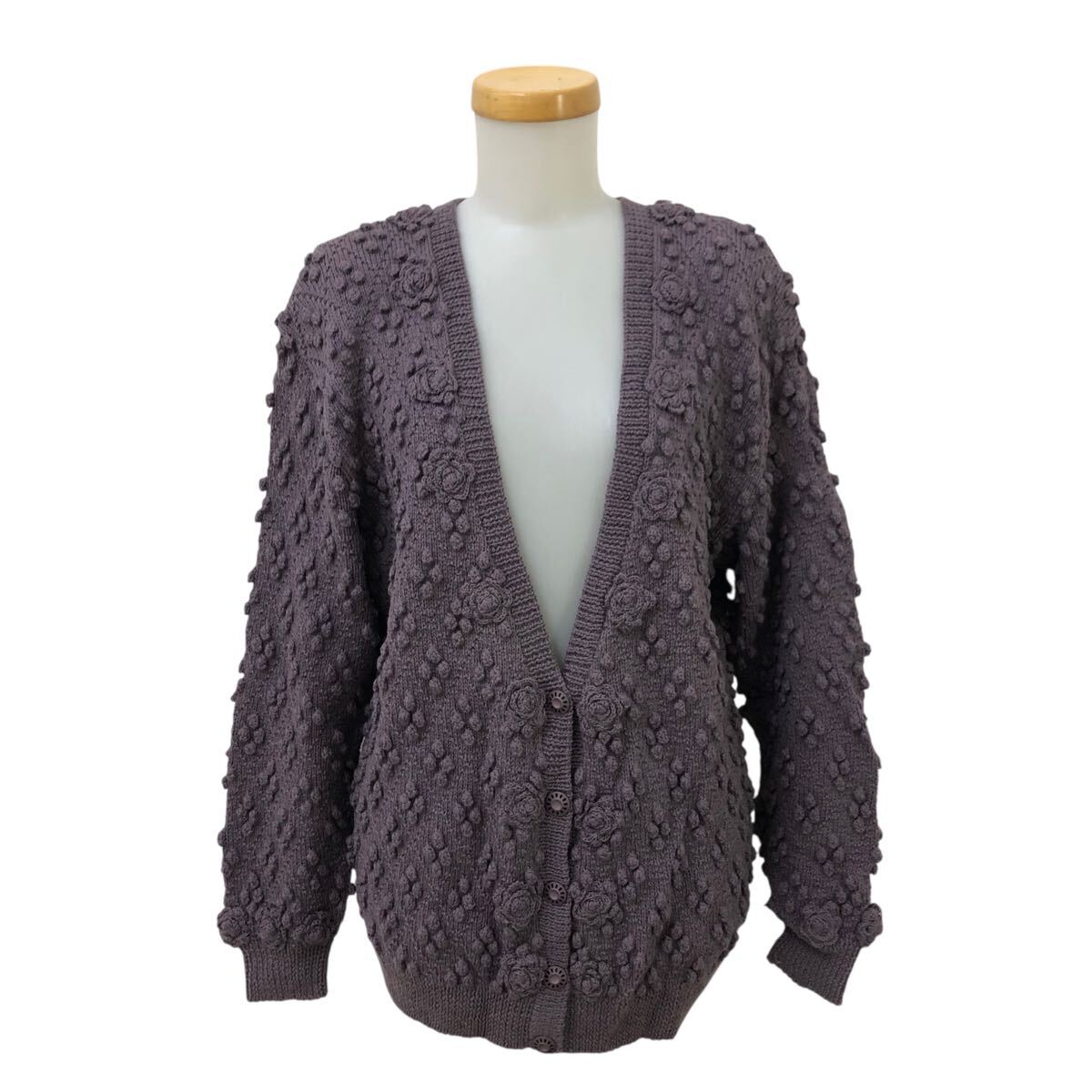 11m676-83 KANEKO ISAO カネコイサオ フラワーモチーフ Vネック 長袖 ニット カーディガン カーデ 上着 羽織 トップス パープル 実寸参考