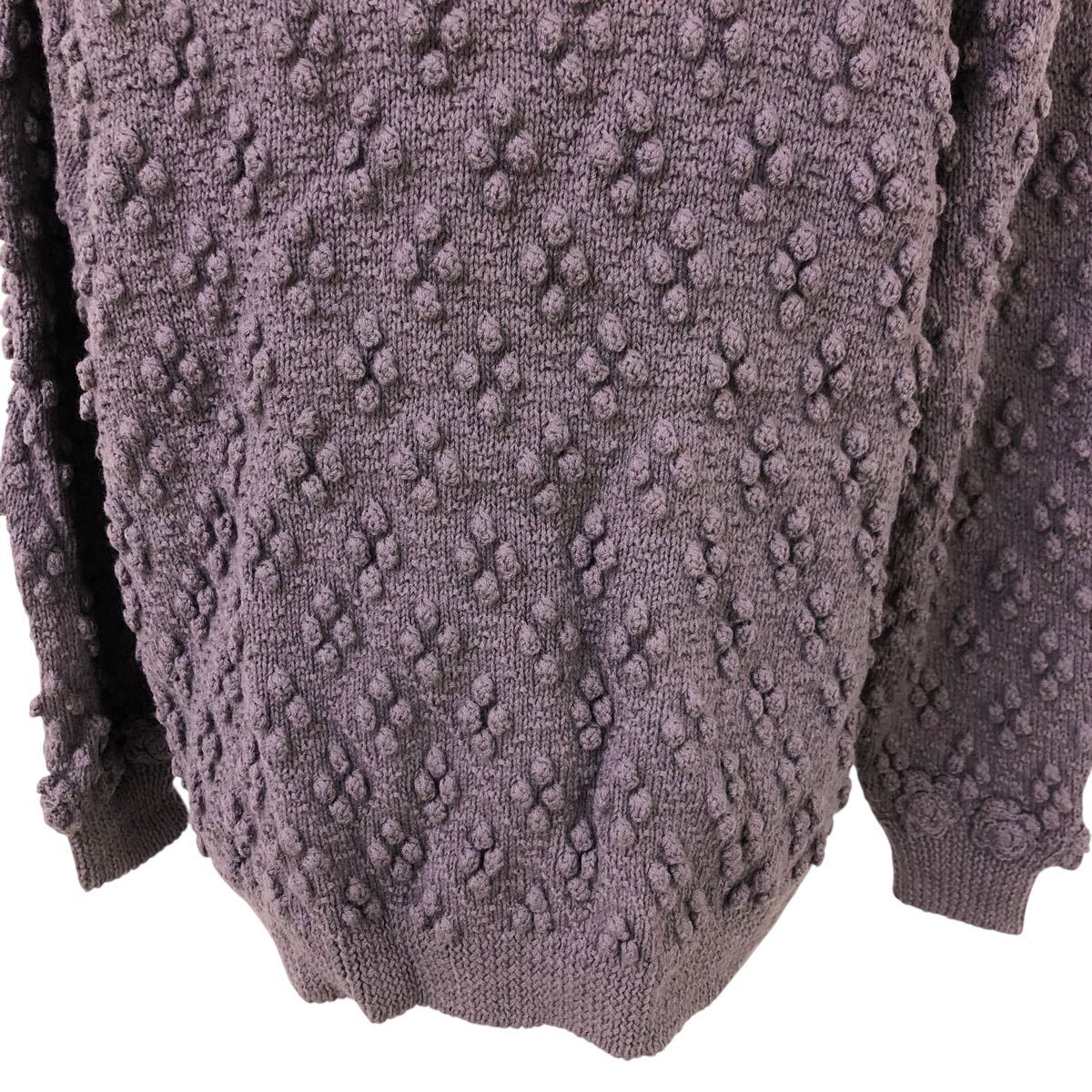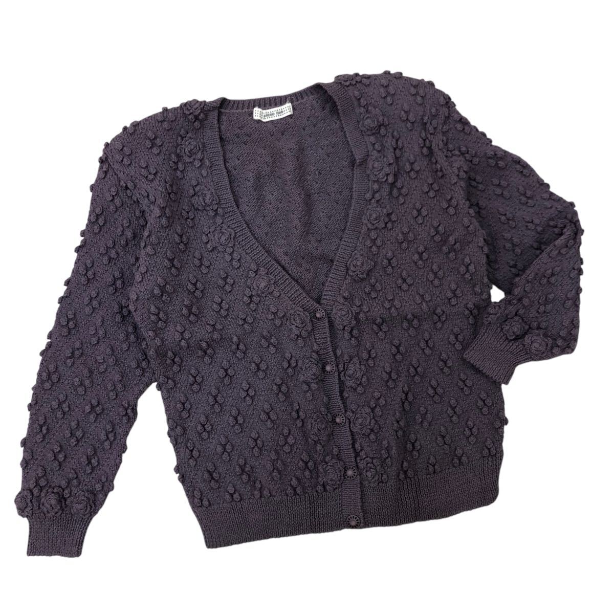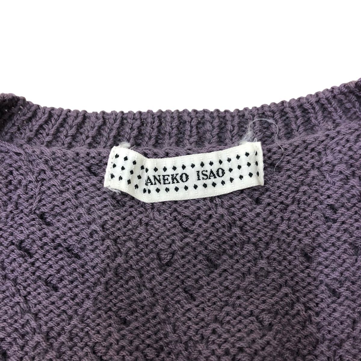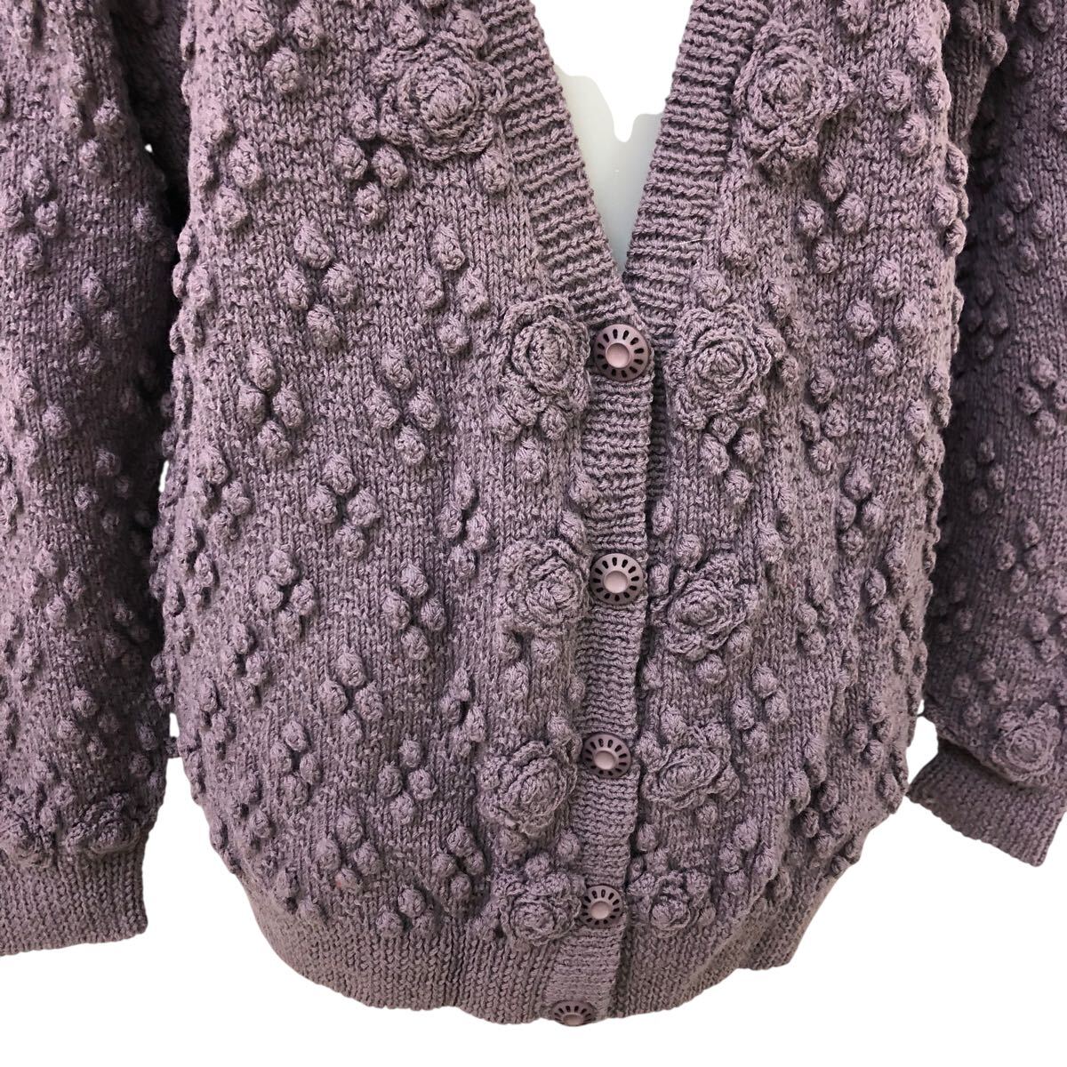 11m676-83 KANEKO ISAO カネコイサオ フラワーモチーフ Vネック 長袖 ニット カーディガン カーデ 上着 羽織 トップス パープル 実寸参考