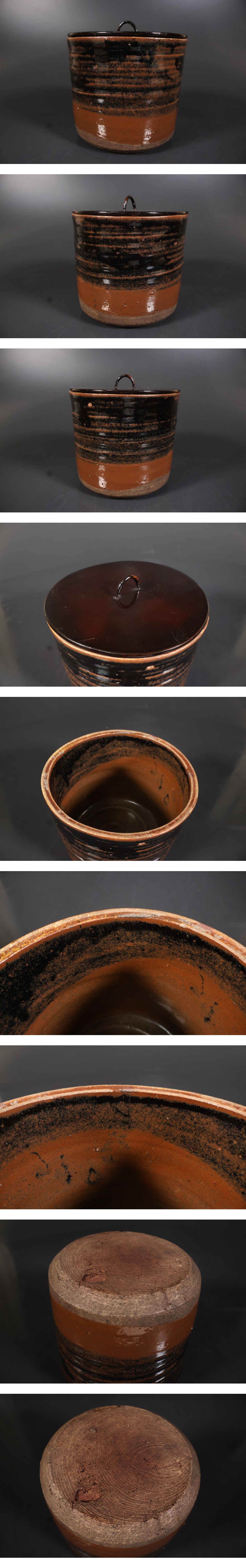 【和】(A3722) 時代古作 江戸 古瀬戸 飴釉水指 茶道具