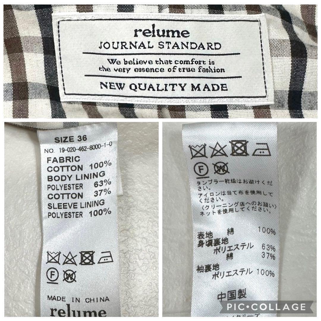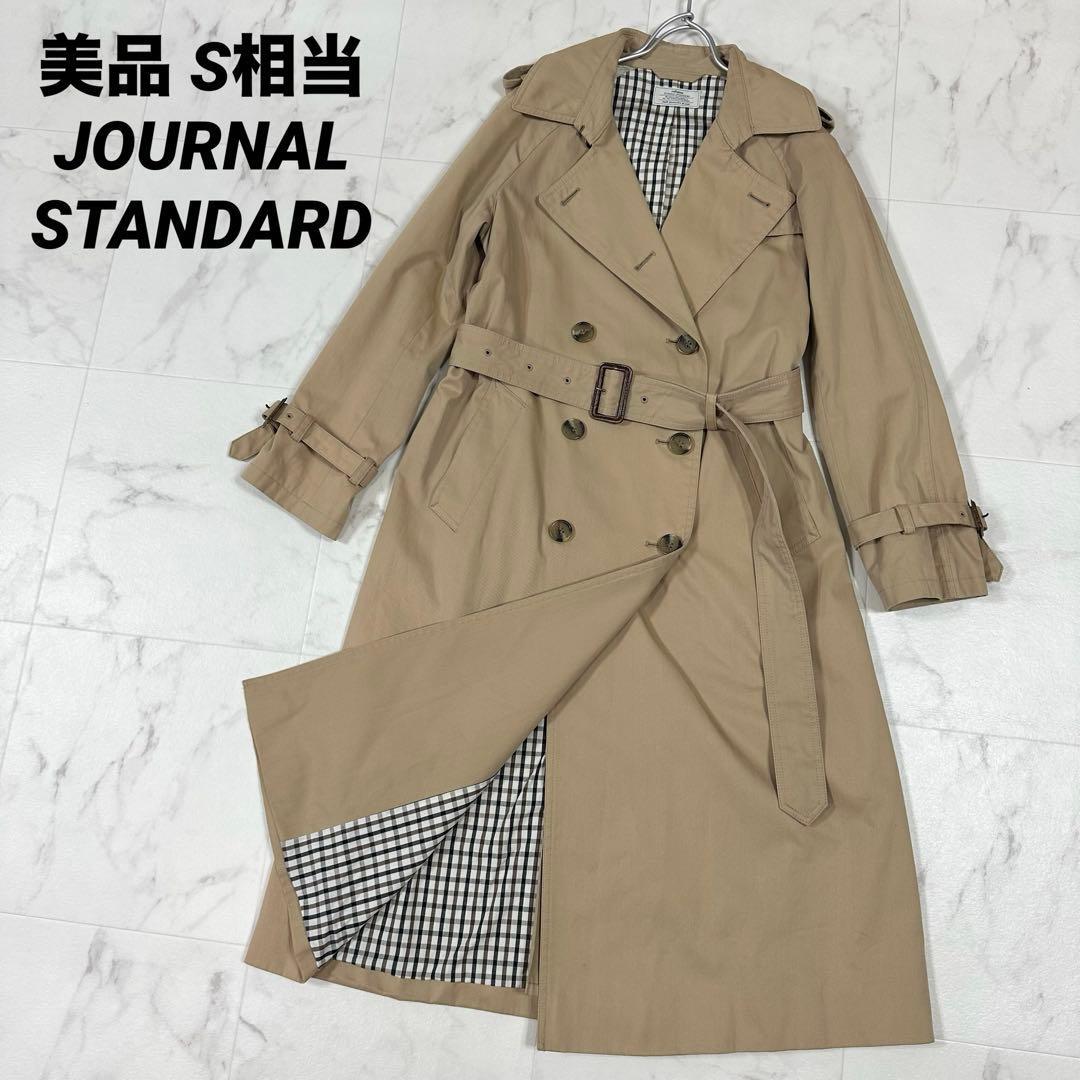 【美品】JOURNAL STANDARD relume ジャーナルスタンダードレリューム サキゾメギャバ トレンチコート チェック裏地 ベージュ 36(S相当)