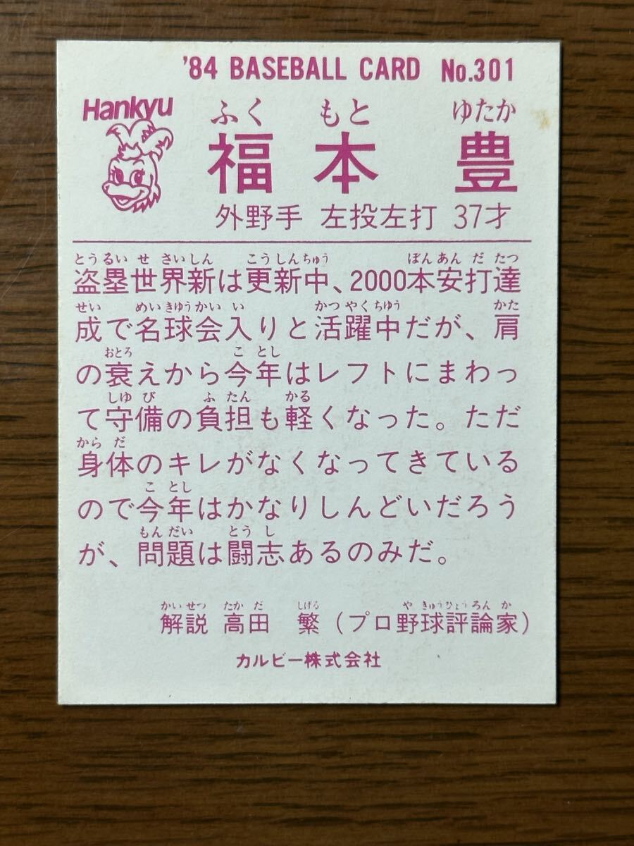 カルビー プロ野球カード ‘84 No.301 福本豊(阪急)