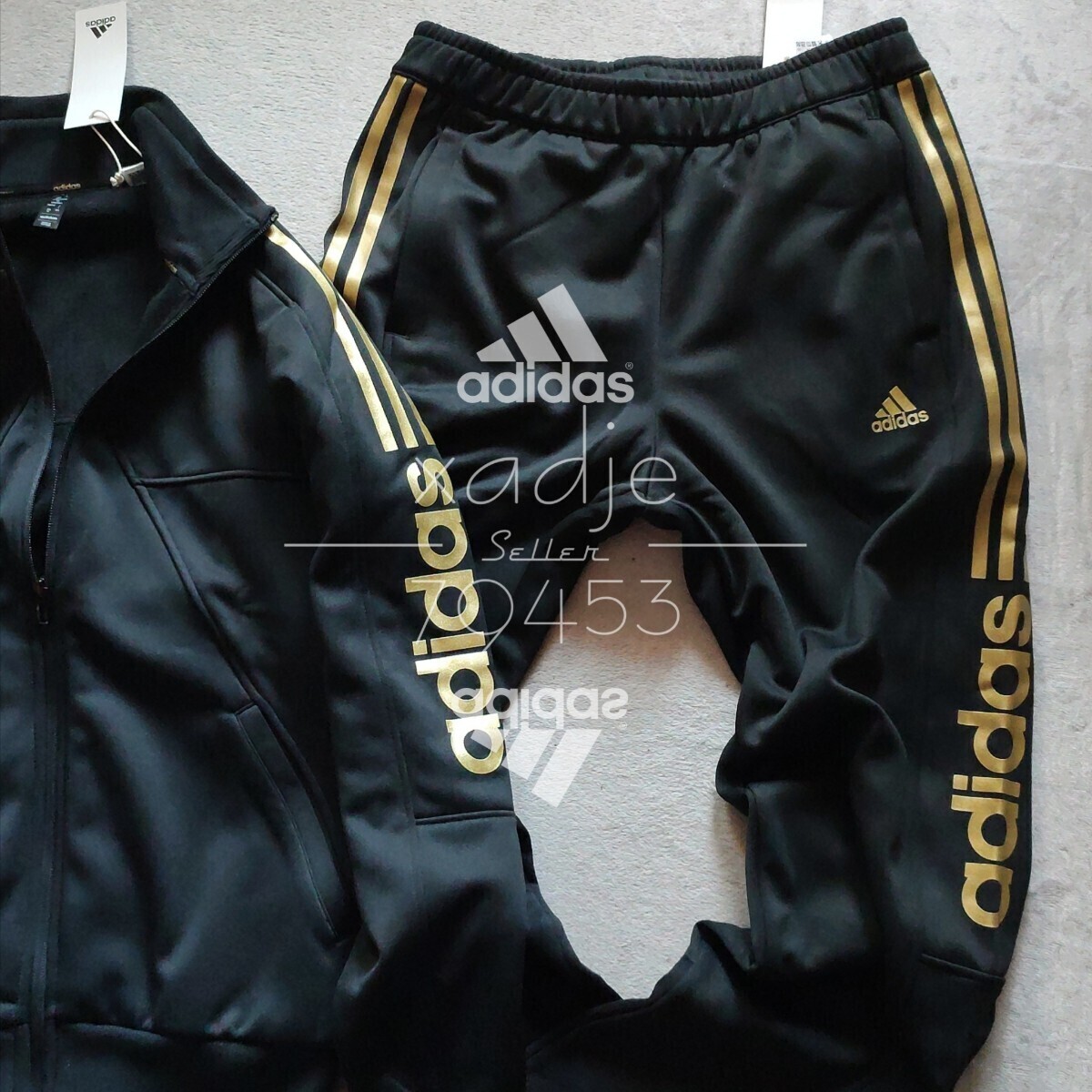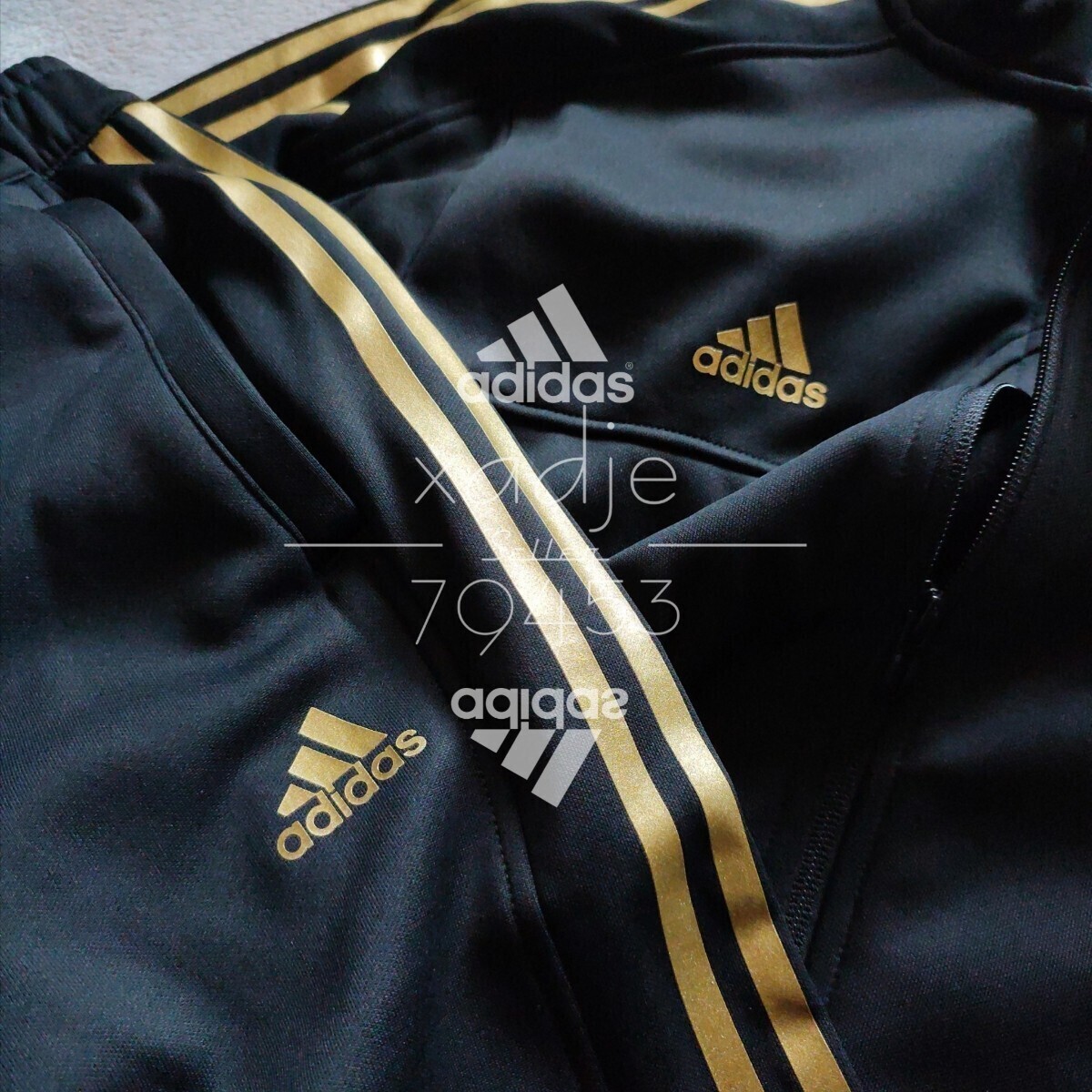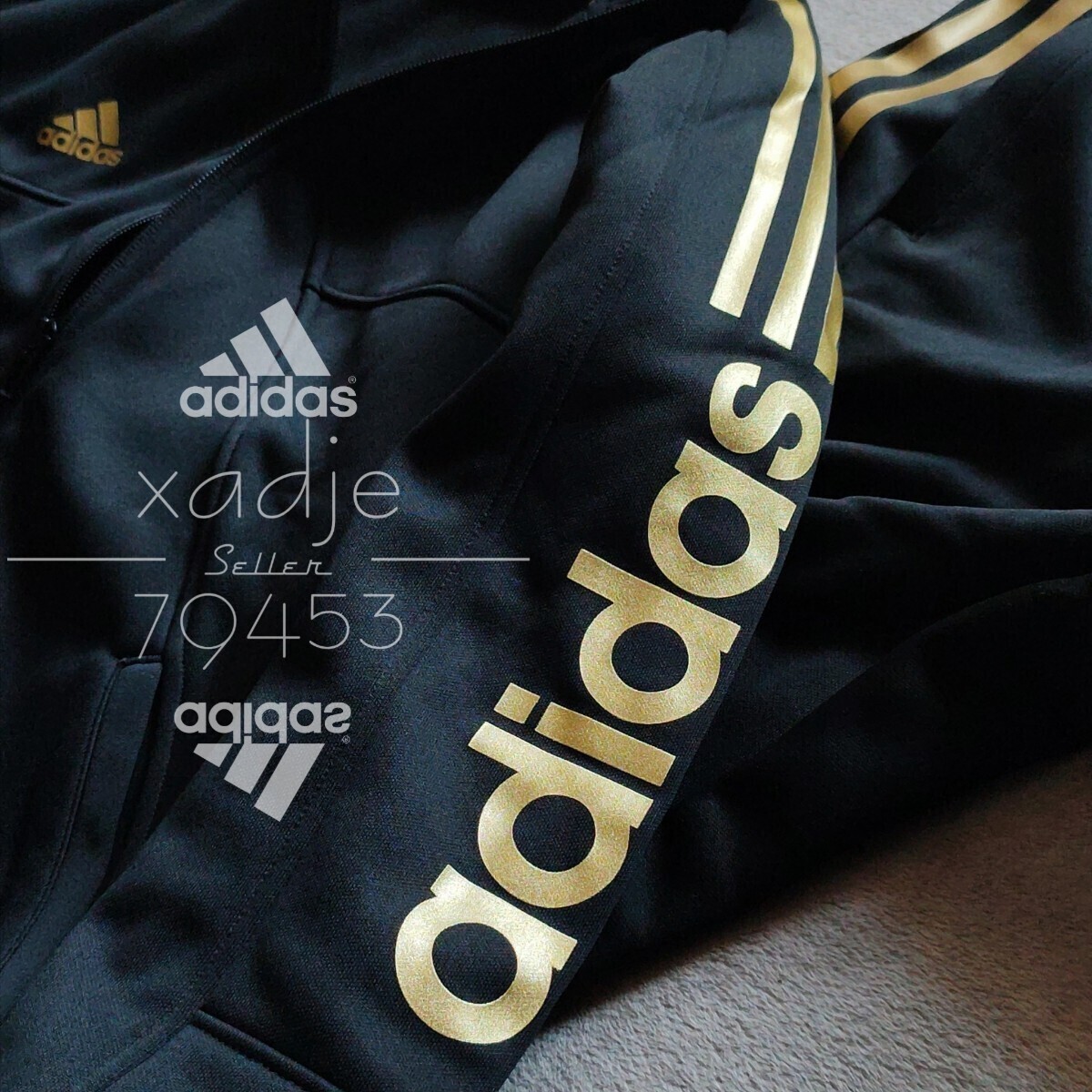 新品 正規品 adidas アディダス 上下セット ジャージ ジャケット パンツ セットアップ 黒 ブラック 金 ゴールド 厚手 定価 17600円 M