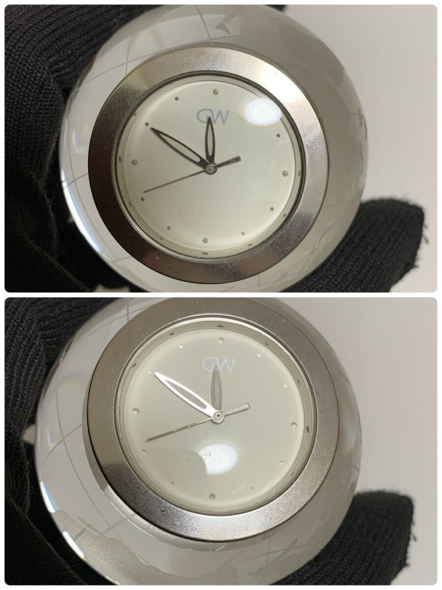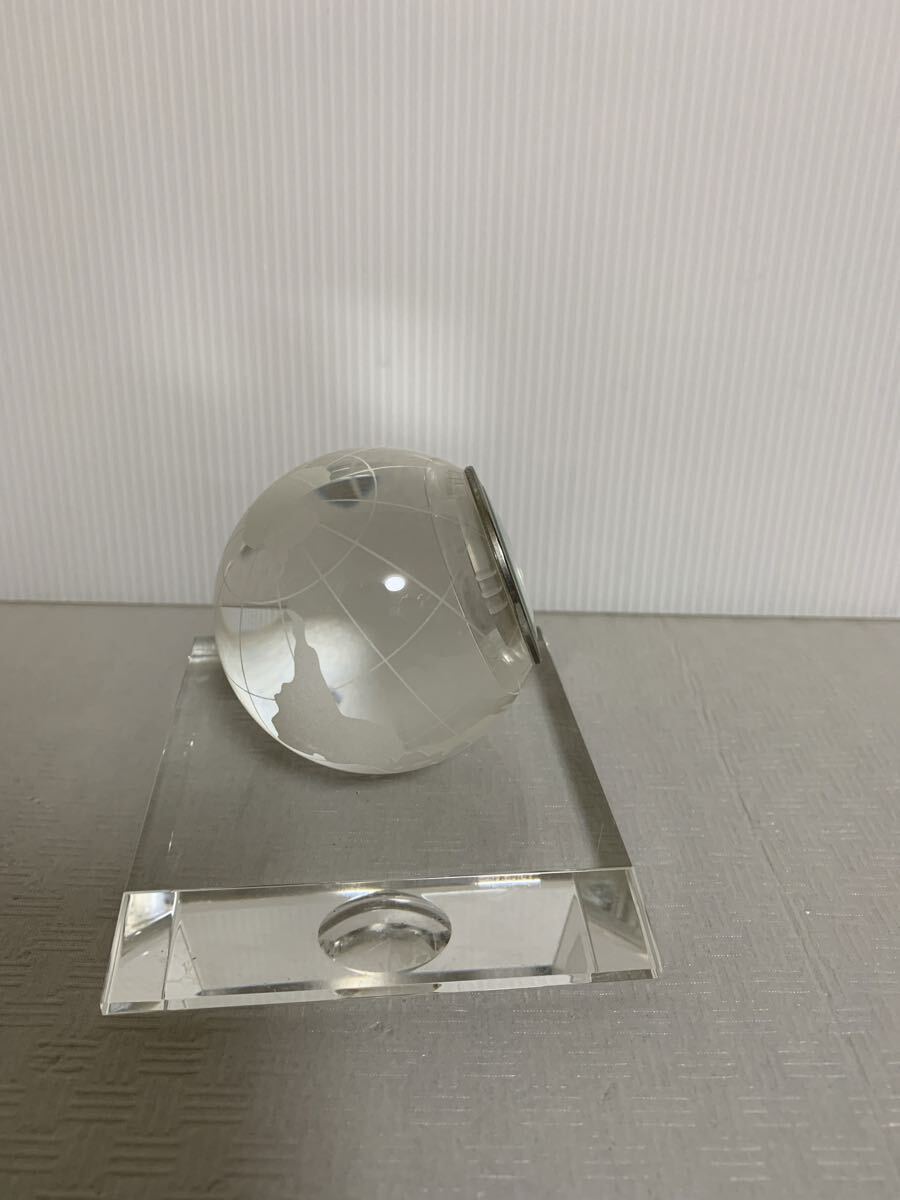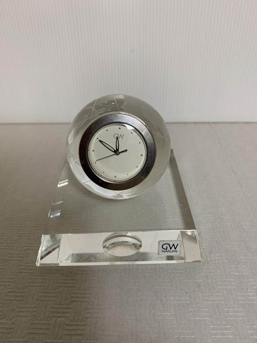 GW NARUMI ナルミ グラスワークス アース クロック 置時計/地球デザイン/部品取り用/現在動作不動/ガラス/USED/ジャンク扱