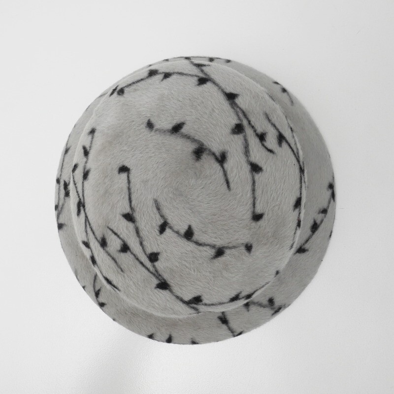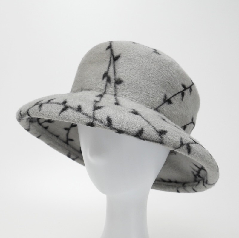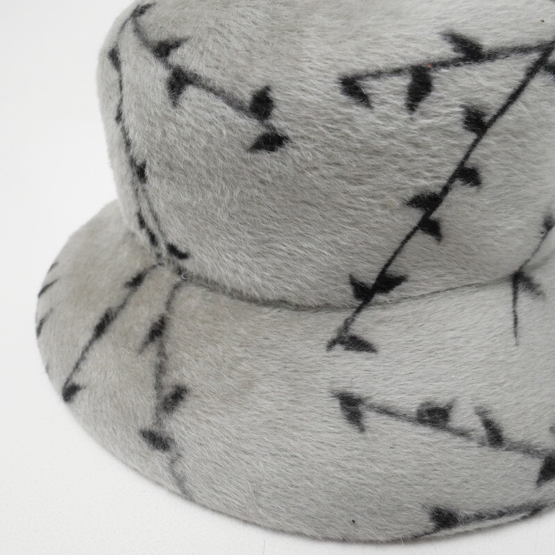 | TJ6060□イタリア製 ノードストローム/NORDSTROM ラビットヘアー 総柄 ファーフェルトハット 帽子 レディース 頭回り約56cm グレー×黒系 | |||