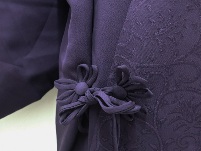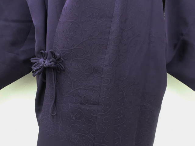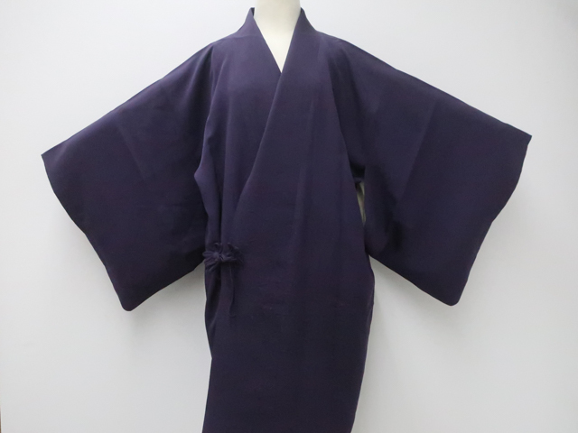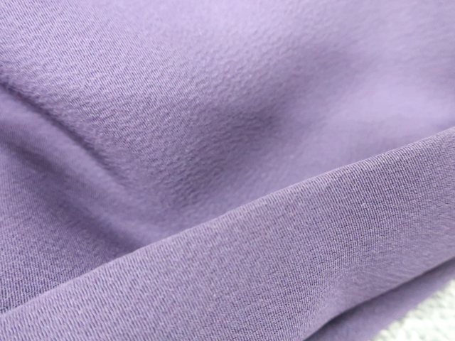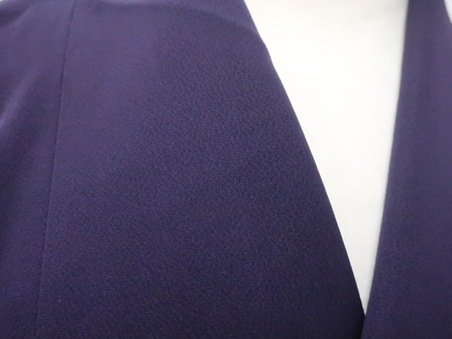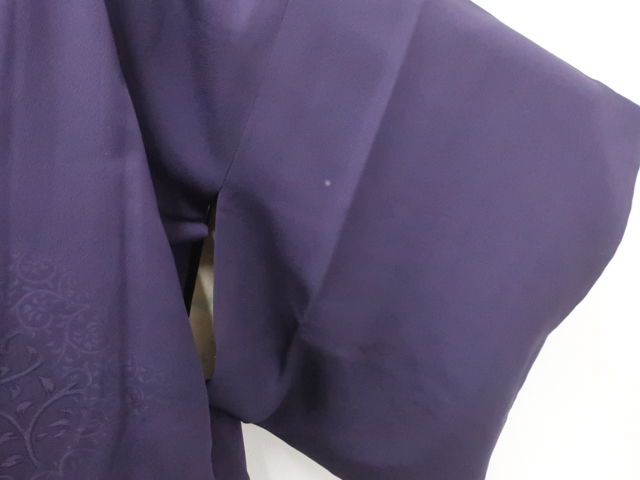 リサイクル商品のため、右前袖と衿・袖口に薄汚れがございますが着用可能なお品です。 地色は紫です。 1枚目の画像が近いお色かと思われます。 素材は正絹です。 |