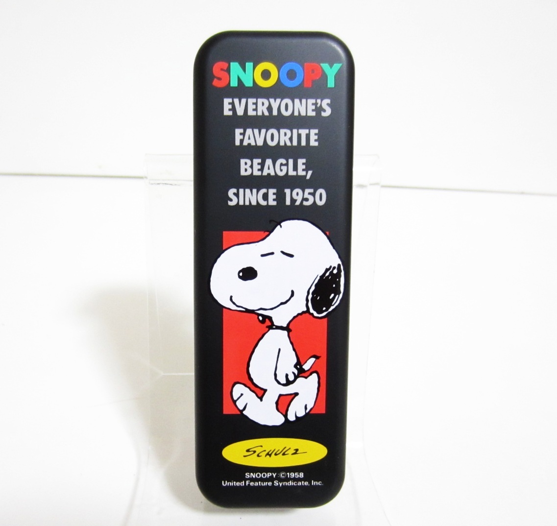 【未使用】サンリオ SNOOPY スヌーピー カンペン 缶 ペンケース 筆箱 2段式 1985年製 黒