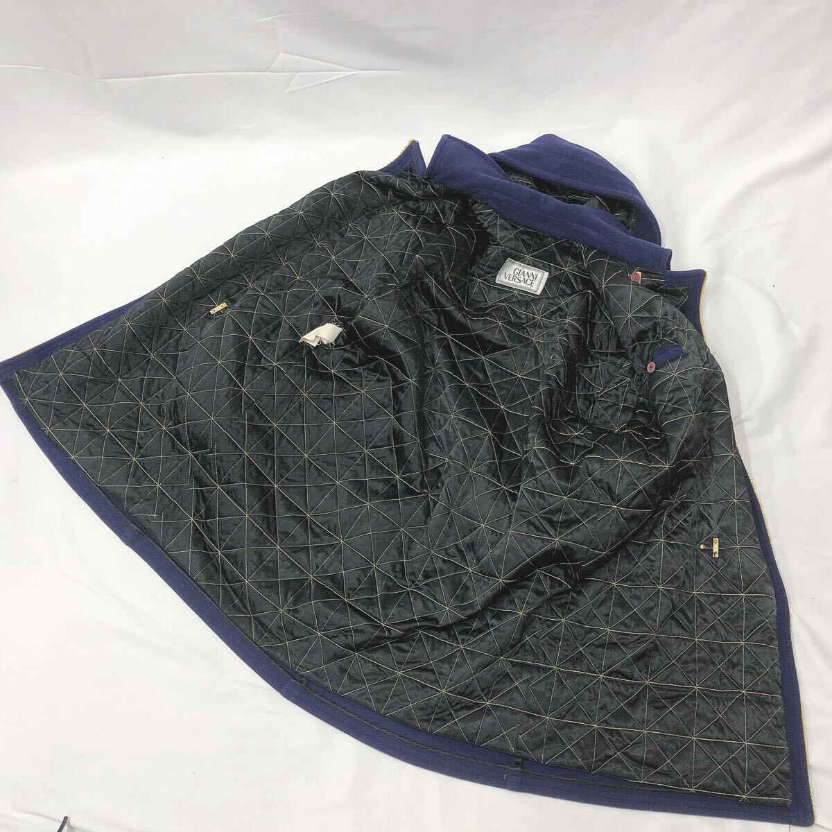 ★3-1008 GIANNI VERSACE ジャンニ ヴェルサーチ ウールダッフルコート ジャケット ブルー系 着丈102cm 肩幅62cm 身幅68cm 袖丈54cm