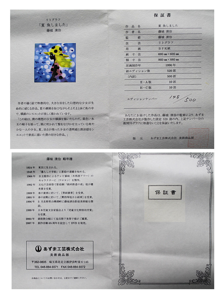 ■藤城清治 【夏・魚しました】 あずま工芸 リトグラフ 刷込みサイン 印章有り エディション有り 保証書有り