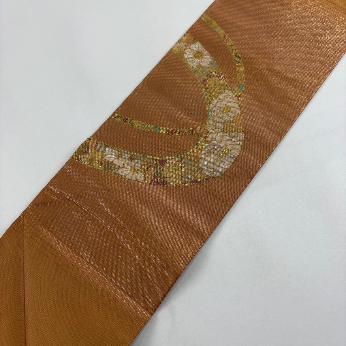 | 名古屋帯 秀品 菊 草花 箔 オレンジ 正絹 【中古】 |