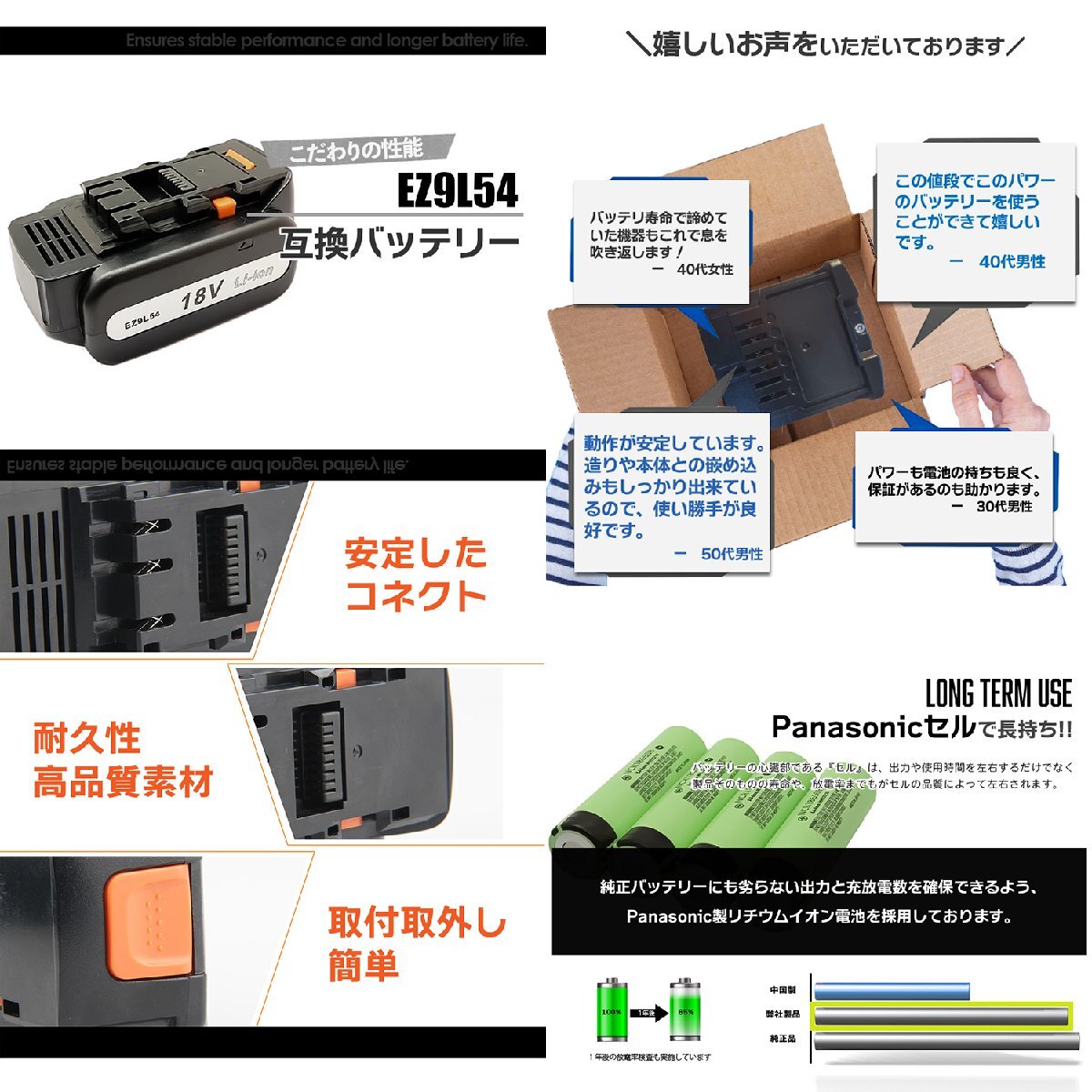 型番:EZ9L54 種類:リチウムイオン 認証:PSE・CEマーク取得済 容量:5000mAh (5.0Ah) 電圧:18V 機能:保護回路・過電流保護・過充電防止・過放電防止 商品到着後1週間以内にレビューご記入で長期保証1年間! |