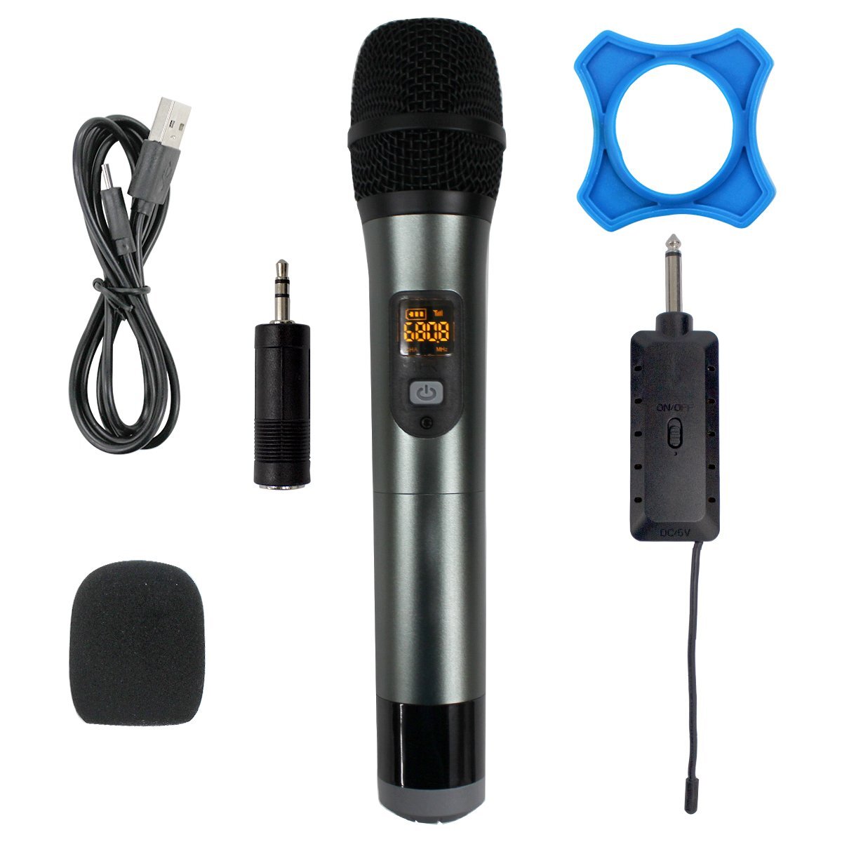 【新品即納】ワイヤレスマイク ハンドマイク 無線 コードレス プロフェッショナル マイク カラオケ グレー 6.5mm 3.5mm アダプター 街宣