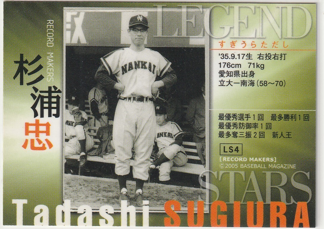 ●2005BBM/レコードメーカーズ【杉浦 忠】インサート:レジェンド スター No.LS4:南海 R