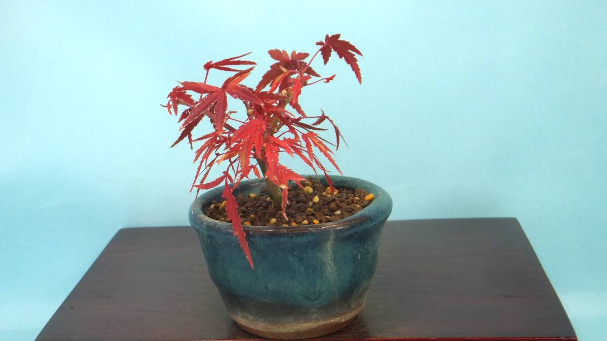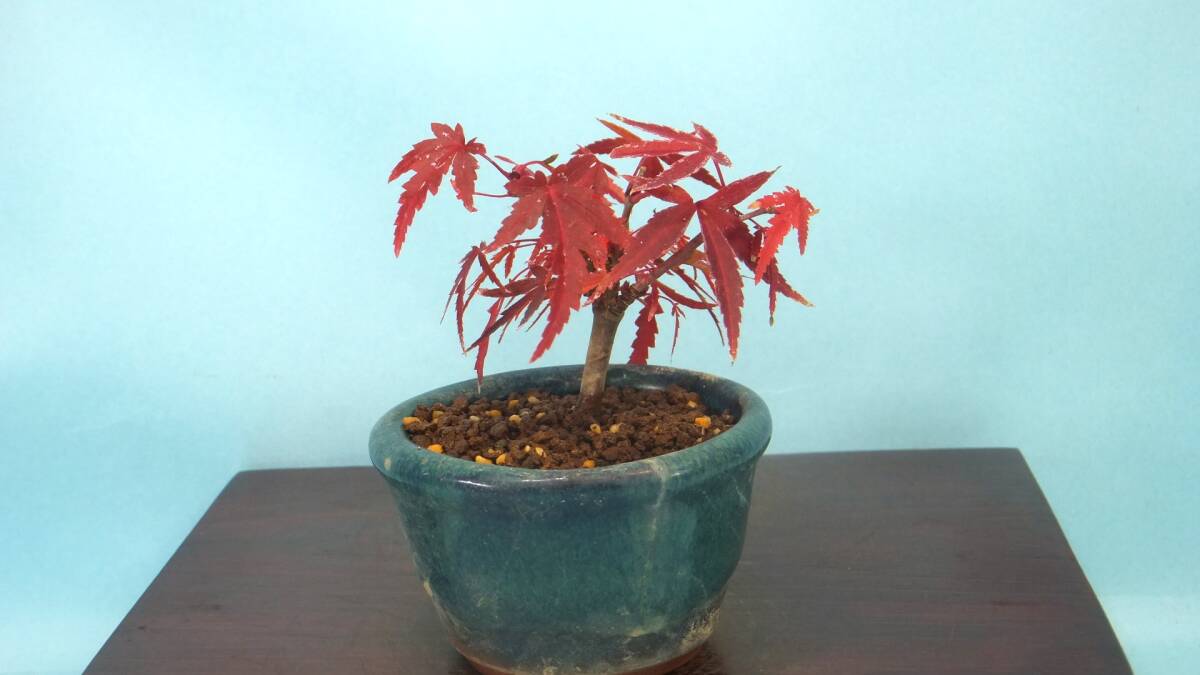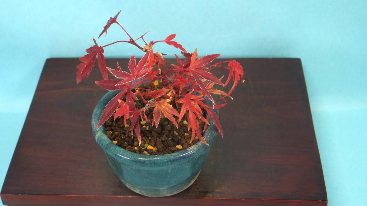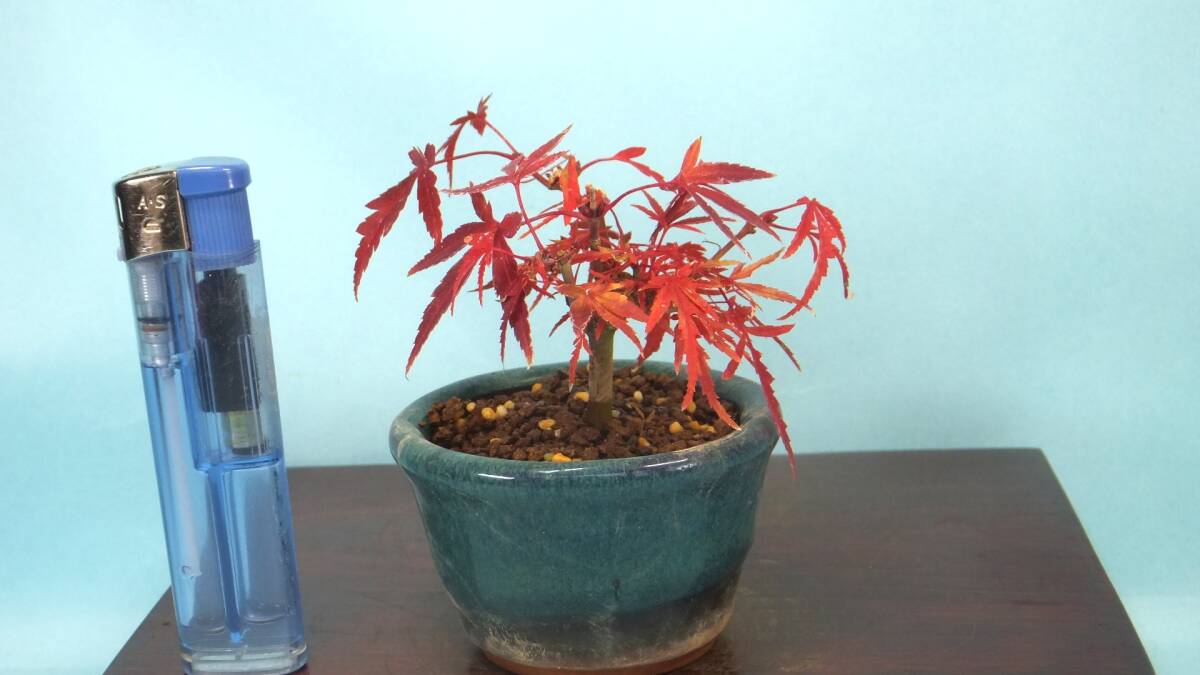 プチサイズで八房もみじの「長良川」です。   樹高(鉢上より) 5cm  樹幅  5.5cm。(サイズは写真撮影時)