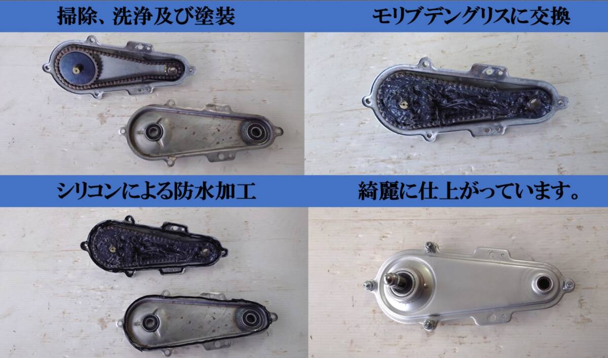 | ・写真の使い回しはしていません、出品している全て実際の一台一台のチエーンケース整備写真です。 |