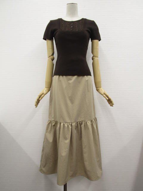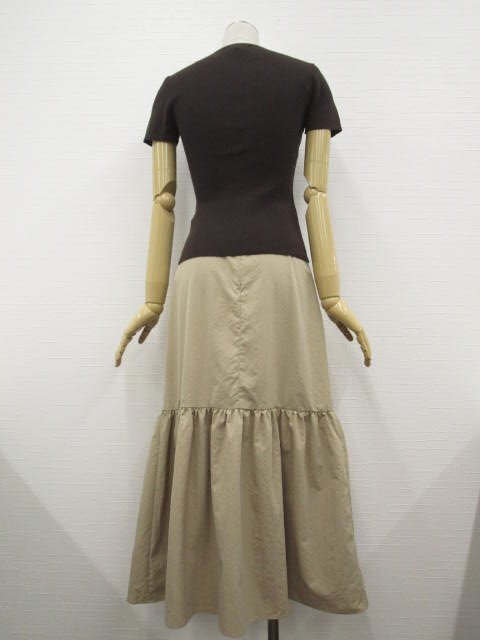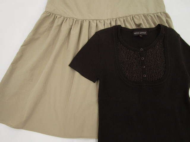 洗える半袖フェイクレイヤードニットカットソー+ロング丈マーメイドスカート コーディネート上下2点セット S相当 ブラウン/ベージュ シンプル・カジュアル系 20代・30代~