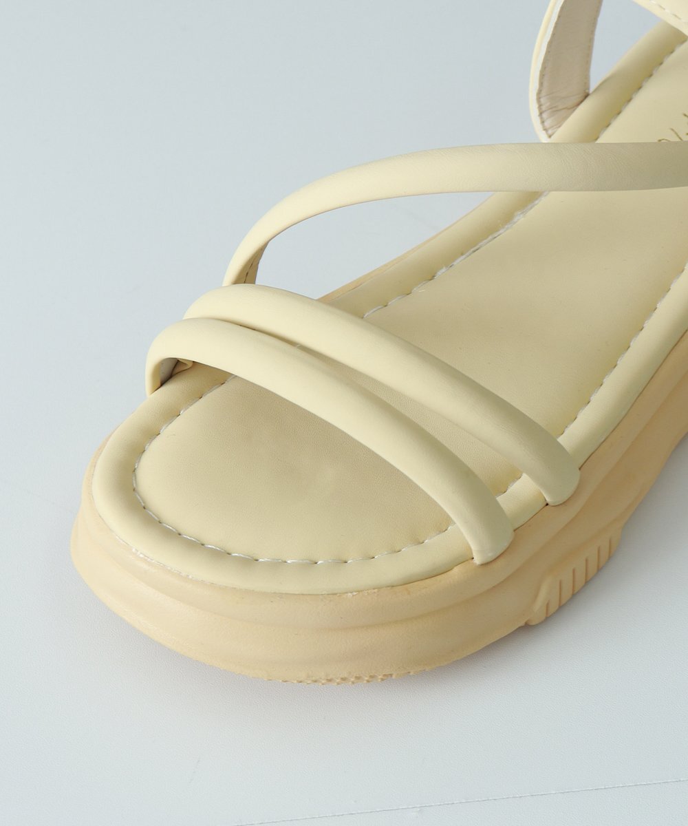 フェミニンな印象になりすぎないよう、程よくスポーティーさを取り入れたアンクルベルトサンダルです。