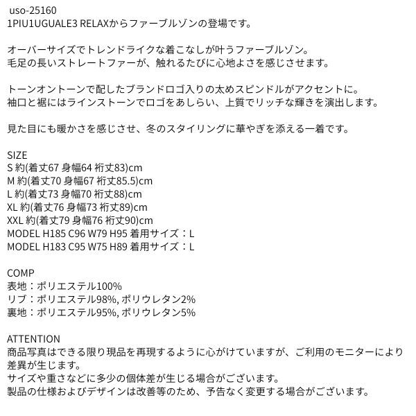 | 商品名 | ファーブルゾン ブラック M ウノピゥウノウグァーレトレ リラックス 1piu1uguale3 RELAX ジャンパー uso-25160 秋 冬 ウノピュウ ウノピュー ウノピゥ 1piu1 |